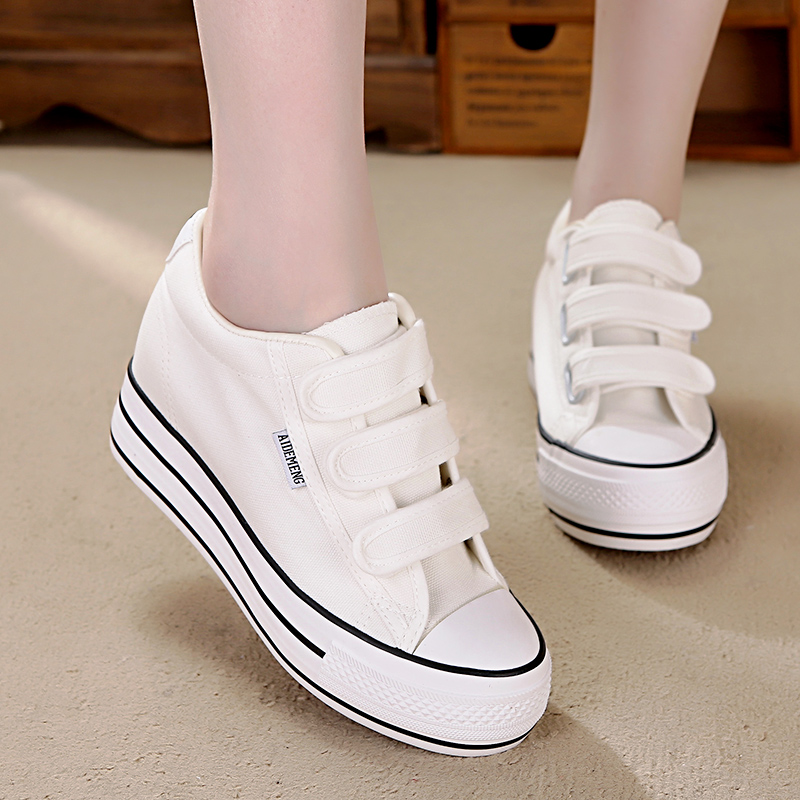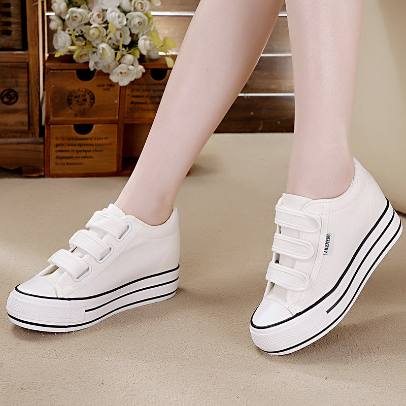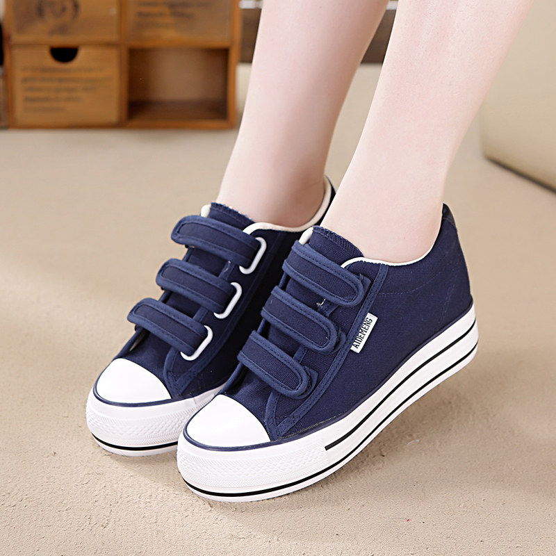 2025春秋季内增高帆布鞋女鞋厚底韩版简约百搭学生魔术贴休闲鞋子