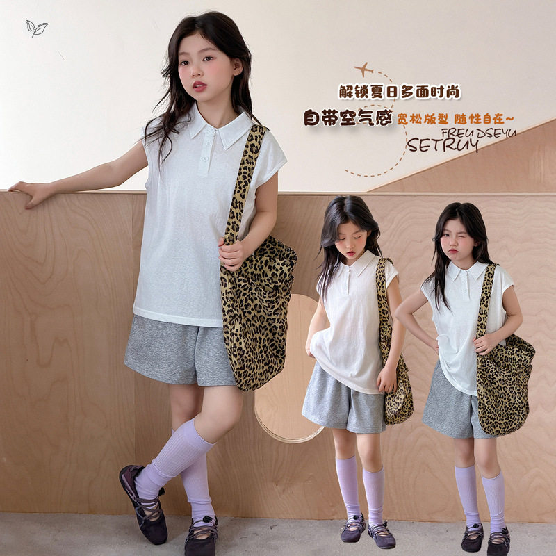 女童夏季运动套装2026新款中大童polo领T恤短袖上衣薄款短裤批发