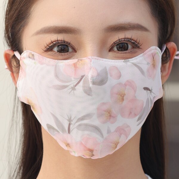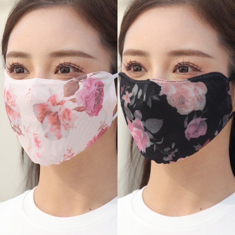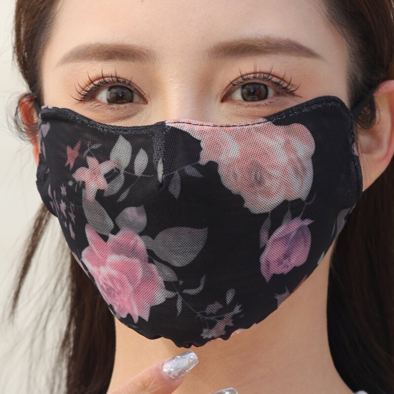 蕾丝口罩防晒夏天升级牛奶纱更透气双层防尘水洗新款印花网纱面罩