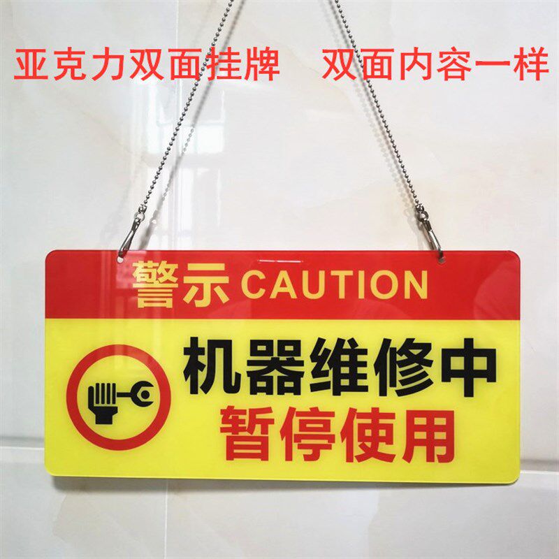 亚克力机器维修中暂停使用禁止开机合闸双面提示牌标识牌挂牌定制