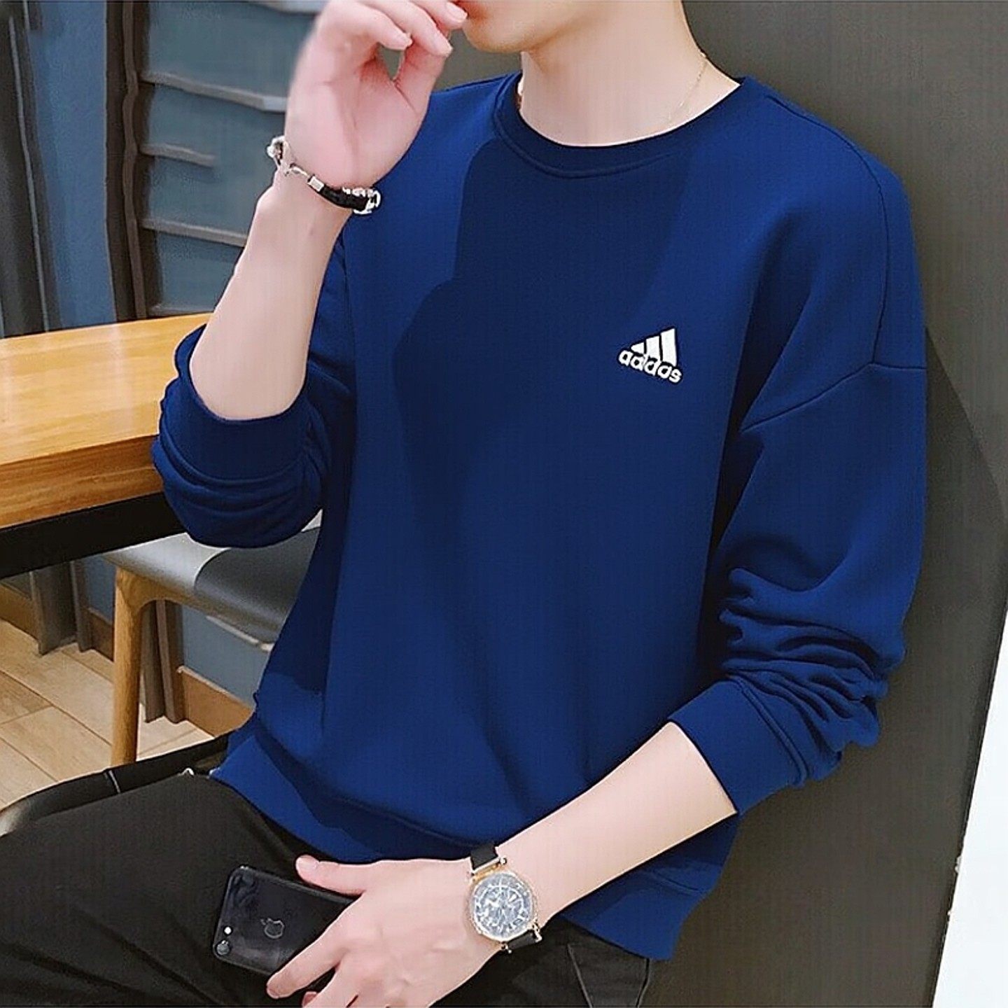 阿迪达斯蓝色卫衣男新款复古纯色棉上衣宽松大码运动服休闲打底衫