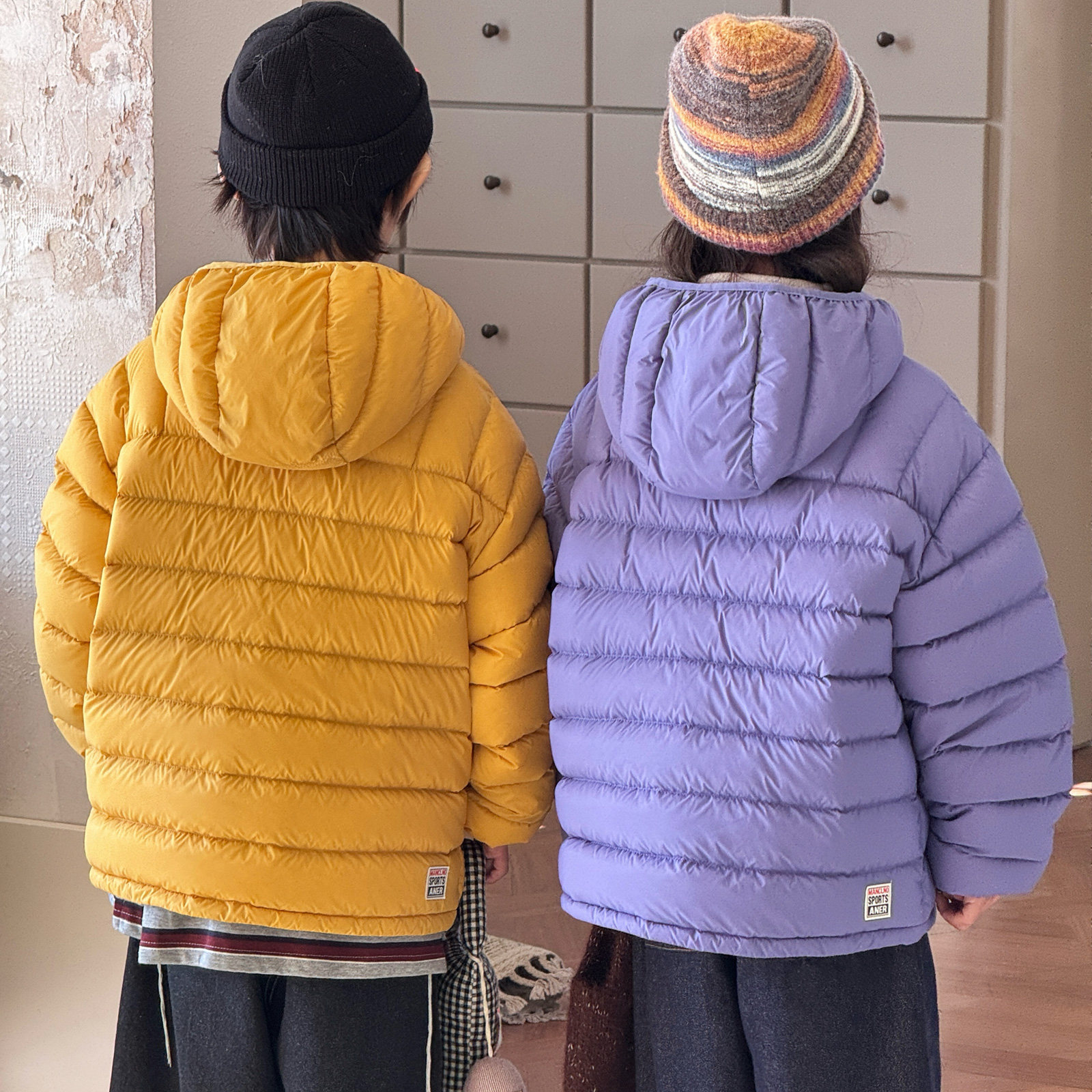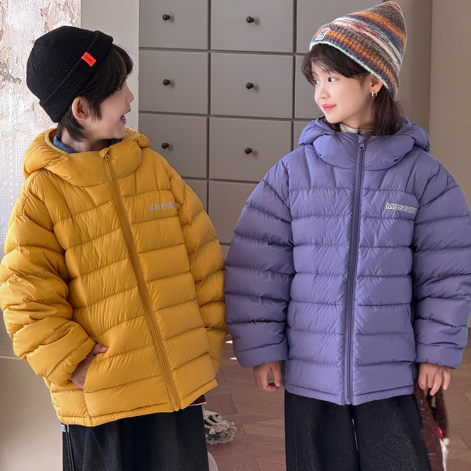 2025年韩版新款男童女童儿童轻薄款排骨羽绒服中大童洋气连帽外套