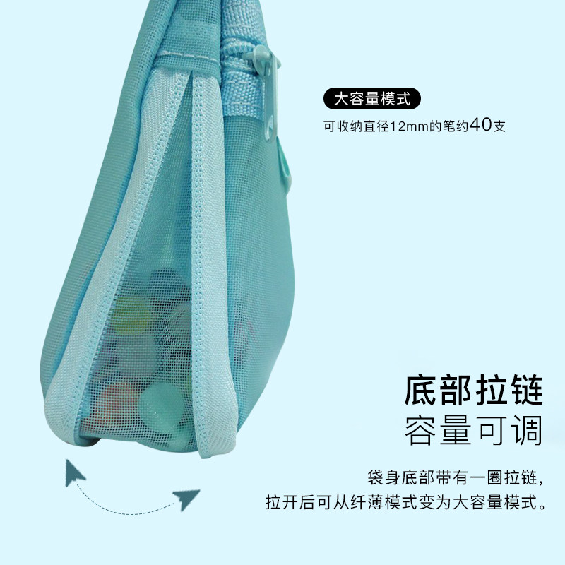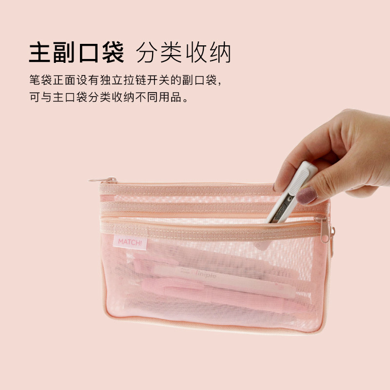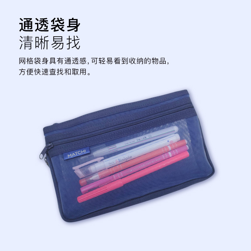 sunstar太阳星文具旗舰店MATCH半透明网眼双层拉链大容量笔袋学生文具收纳容量调节底部可扩展设计纯色