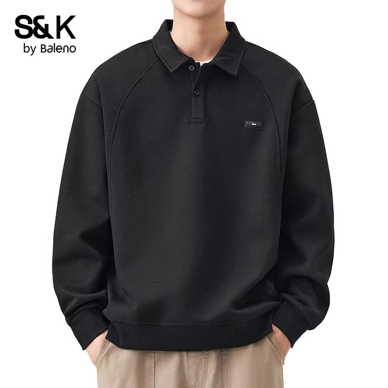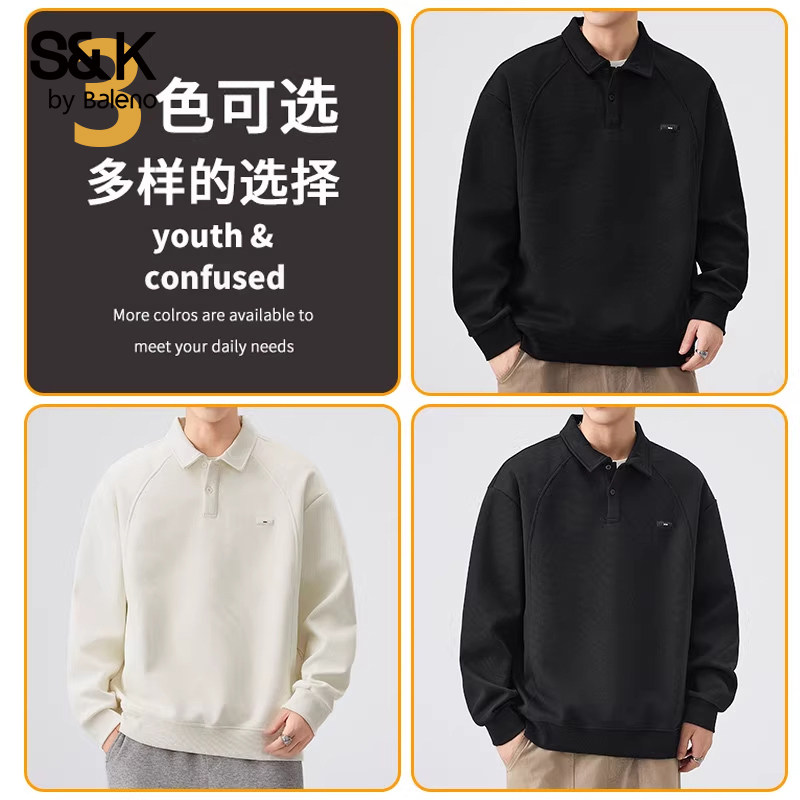 Baleno班尼路Polo衫长袖男款秋冬加绒宽松翻领t恤上衣服男士卫衣