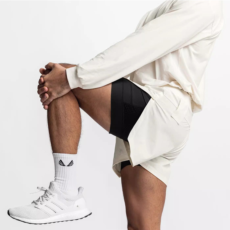 美式双层健身运动短裤男宽松带内衬训练速干透气跑步篮球四分裤夏