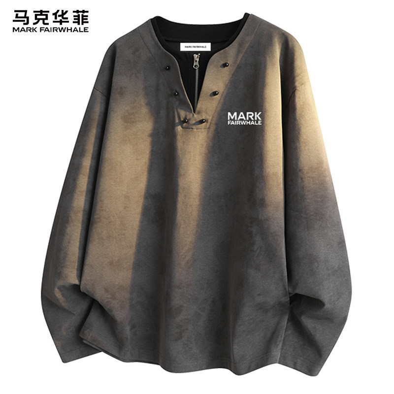 马克华菲假两件长袖T恤男款春秋季半拉链潮牌男士内搭上衣打底衫