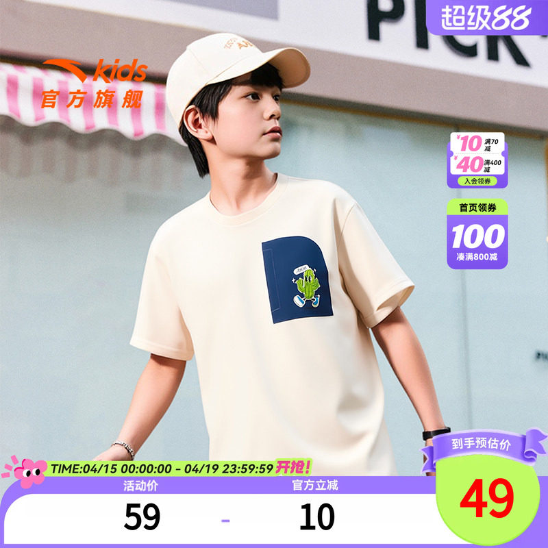 安踏童装儿童短袖T恤2026新款夏季亲肤棉感男大童短上衣百搭透气