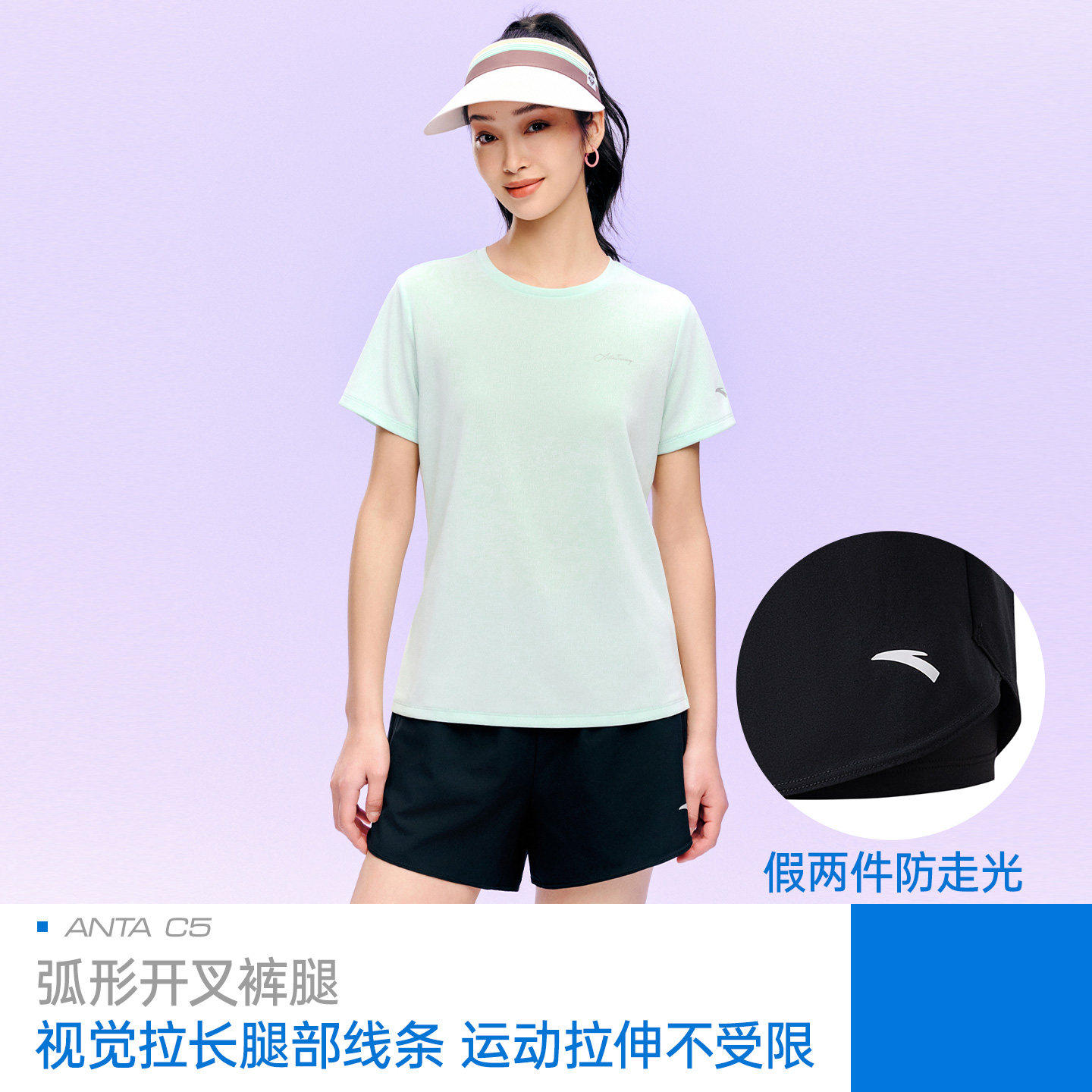 安踏速干套装透气跑步两件套女夏季体测服训练运动服短裤短袖T恤