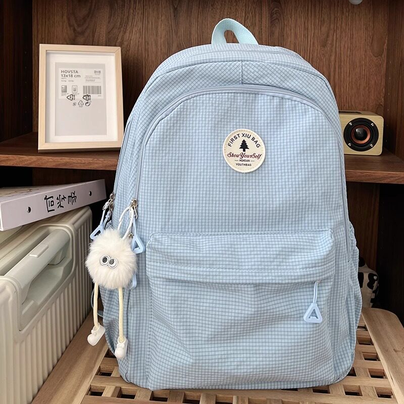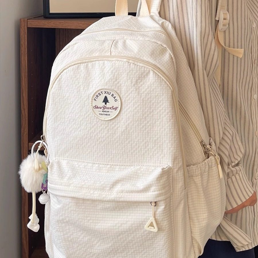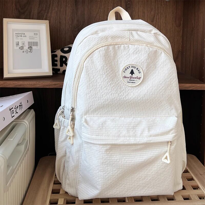 大容量书包女生初中小众设计感纯色高颜值高中生简约双肩包学院风
