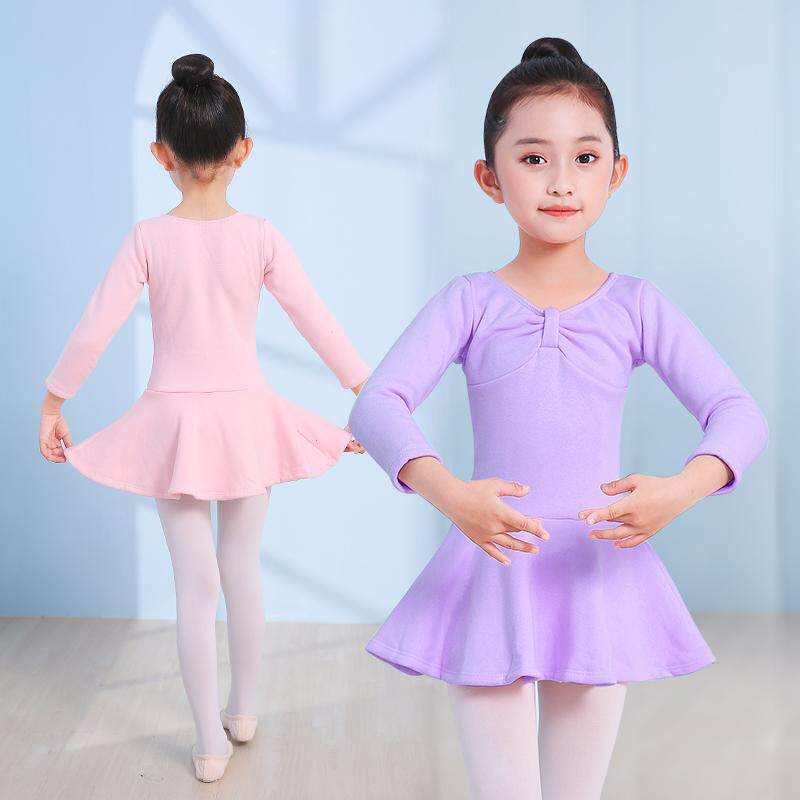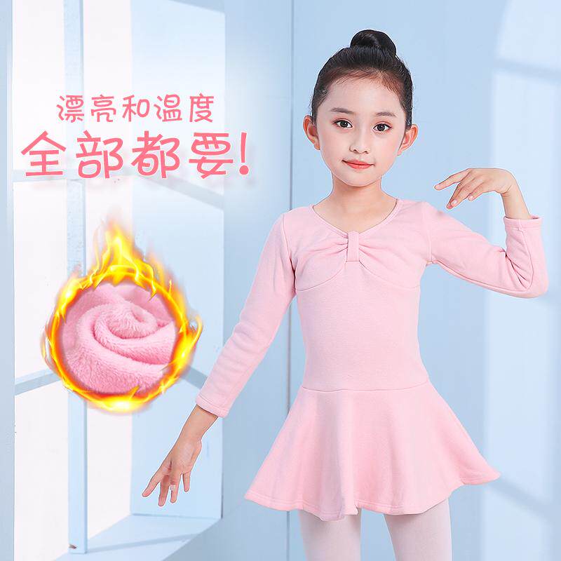 加绒加厚舞蹈服儿童女秋冬季芭蕾舞裙女童粉色跳舞练功服分体裙子