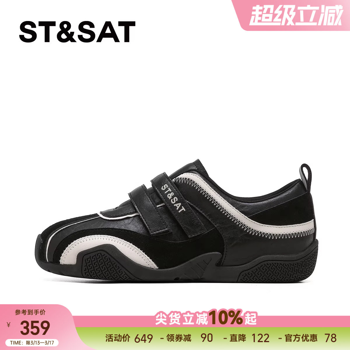 星期六女鞋德训鞋女2026年春季新款魔术贴鞋子平底黑色阿甘运动鞋