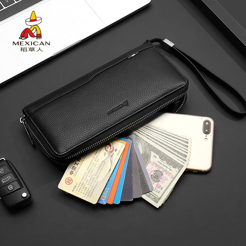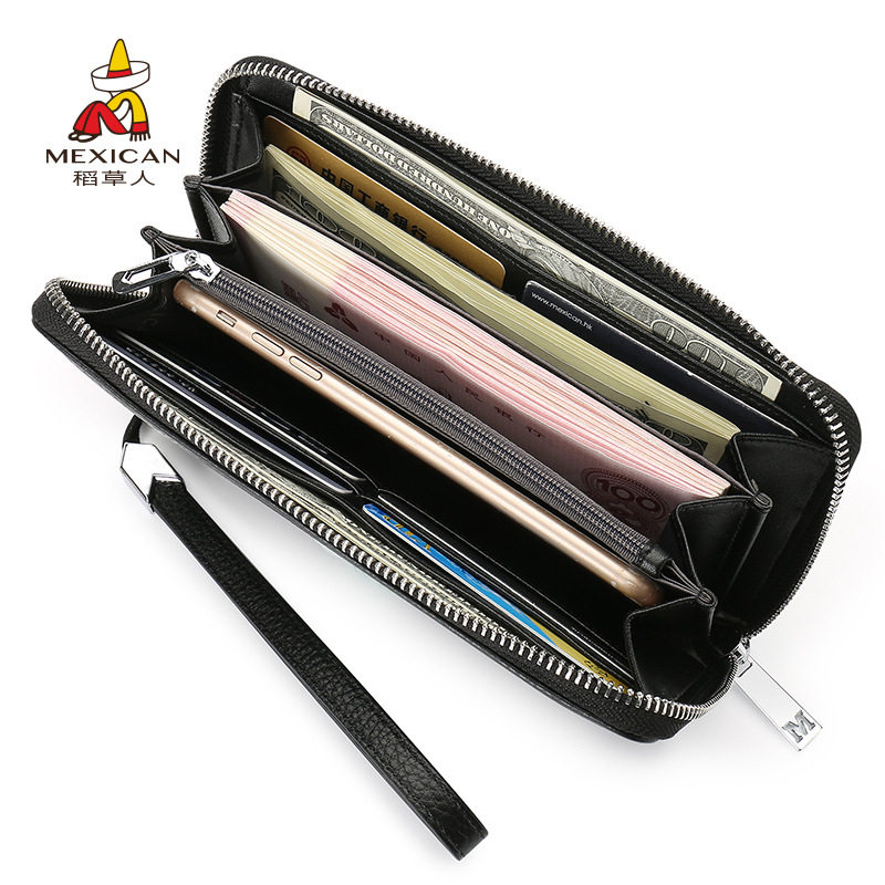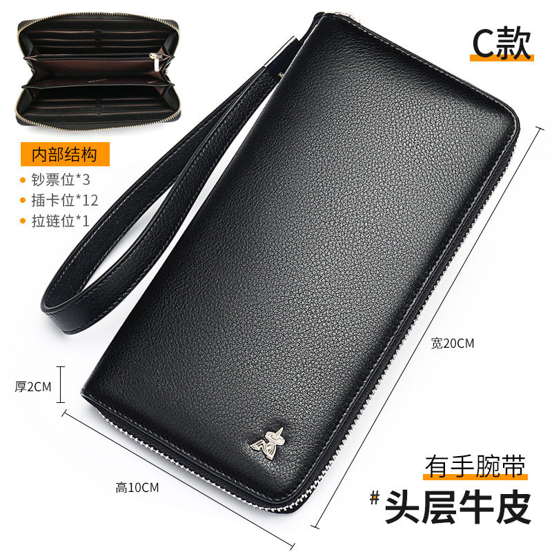 官方旗舰店稻草人钱包男长款拉链手拿包真皮ck1手挽皮夹商务手包