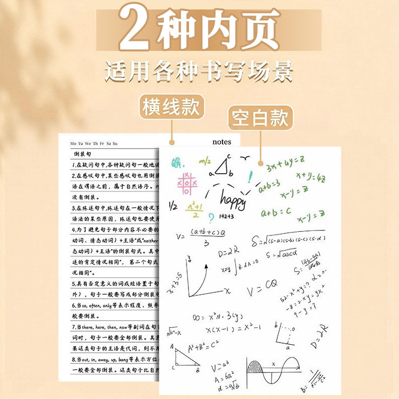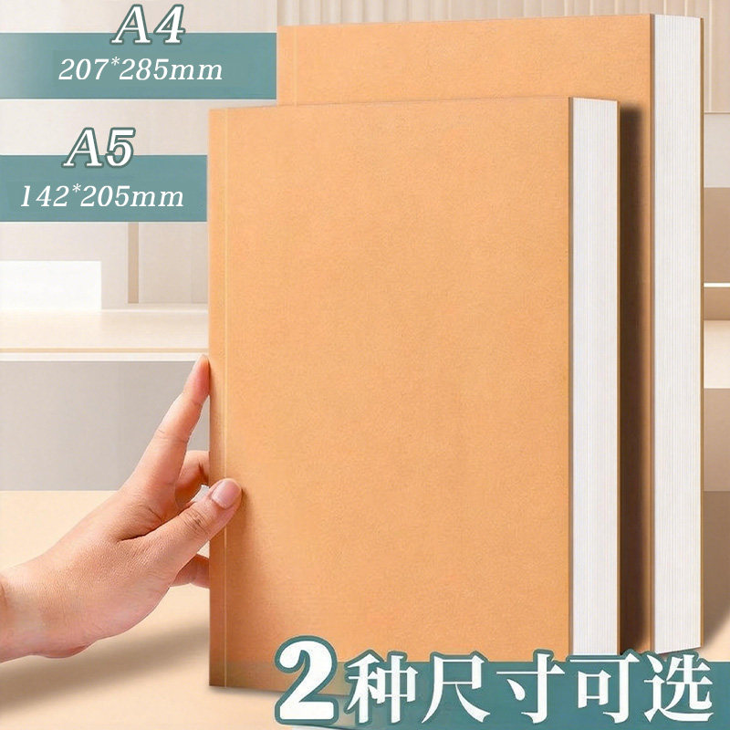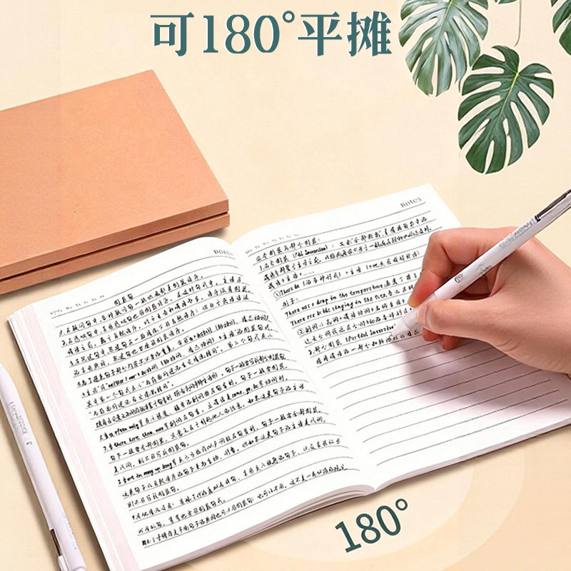 本子牛皮直背本A5横线加厚笔记本复古牛皮纸笔记本超厚空白草稿本学习可平摊高颜值本记事本日记本大学生初中