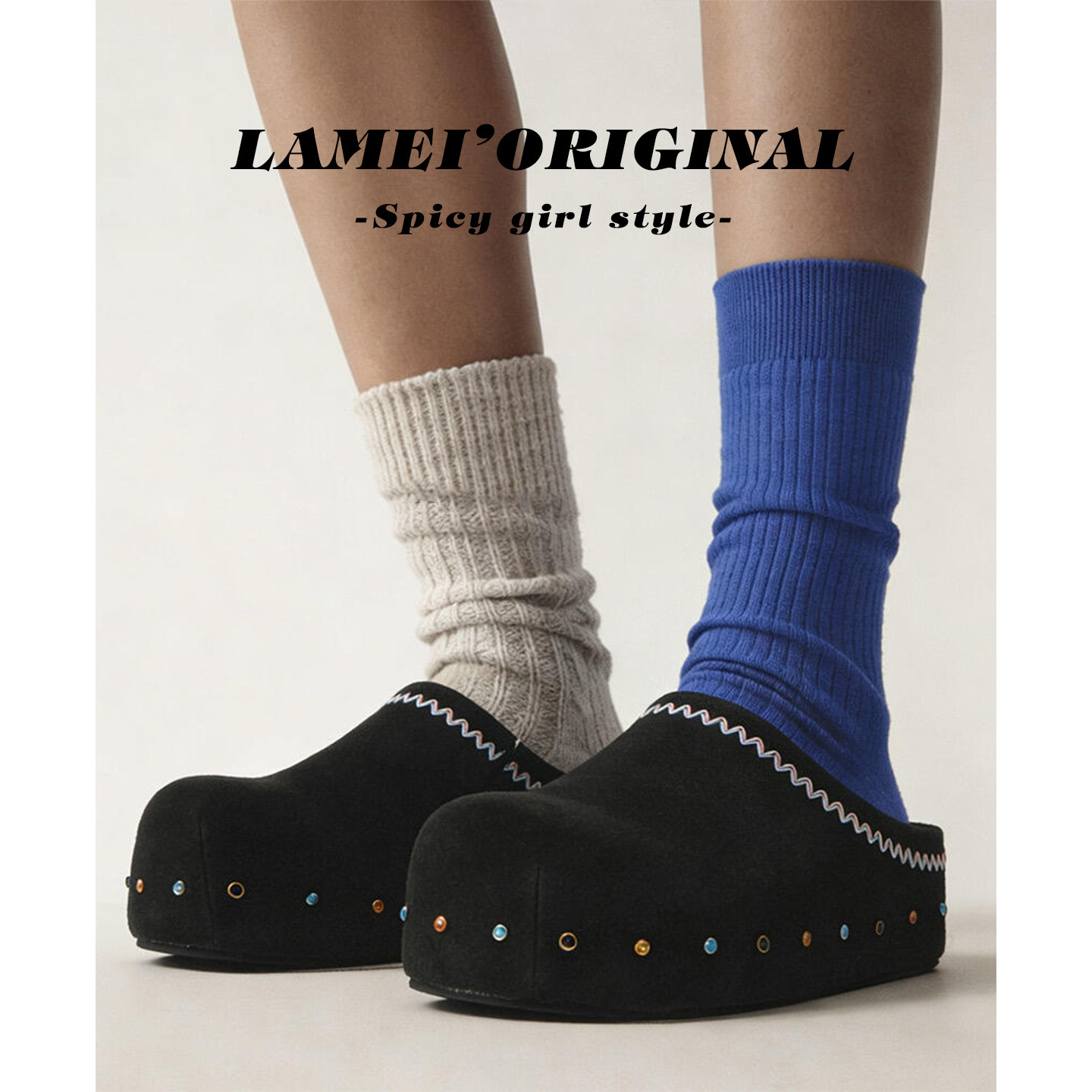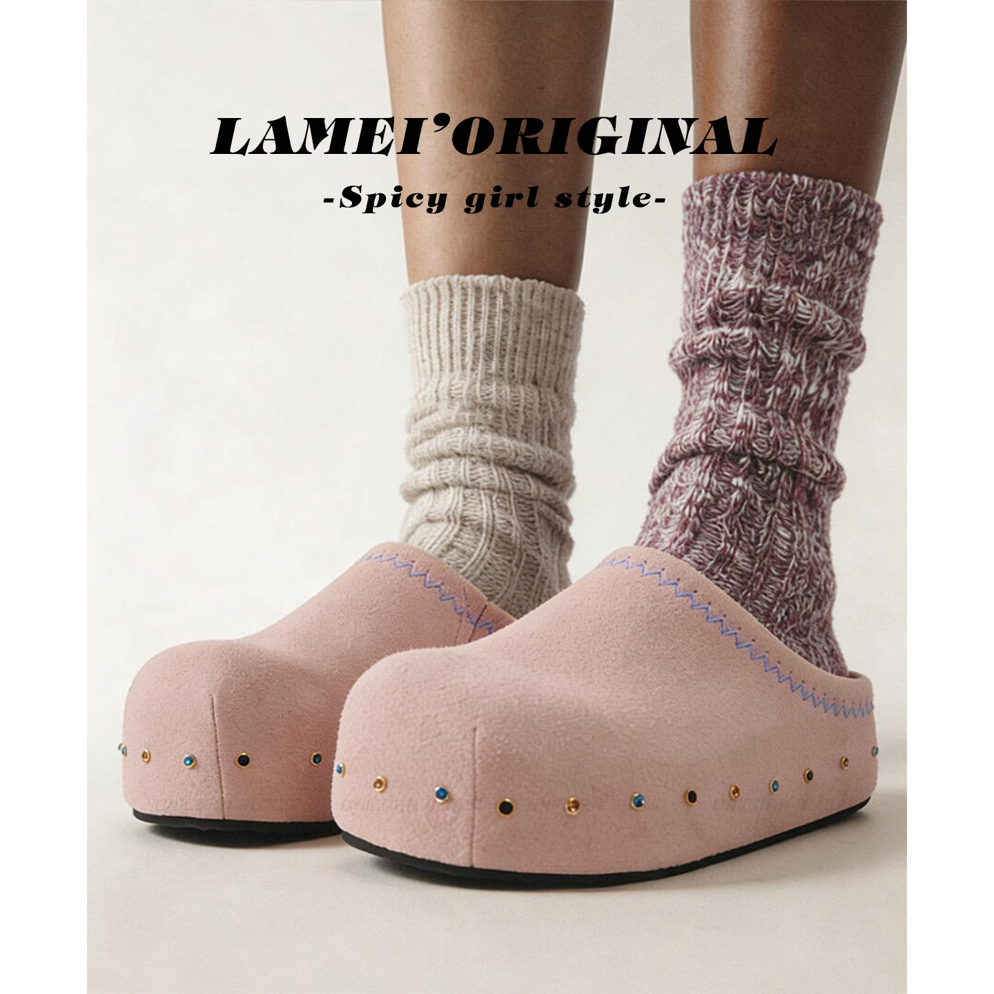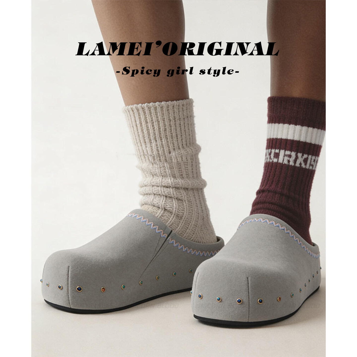 高级感小众彩钻厚底勃肯鞋女外穿2026夏季新款黑色复古增高包头拖