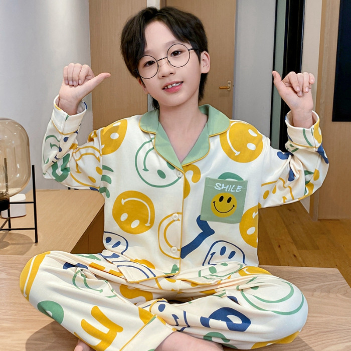 儿童睡衣男童春秋季薄款纯棉男孩长袖青少年开衫中大童家居服套装