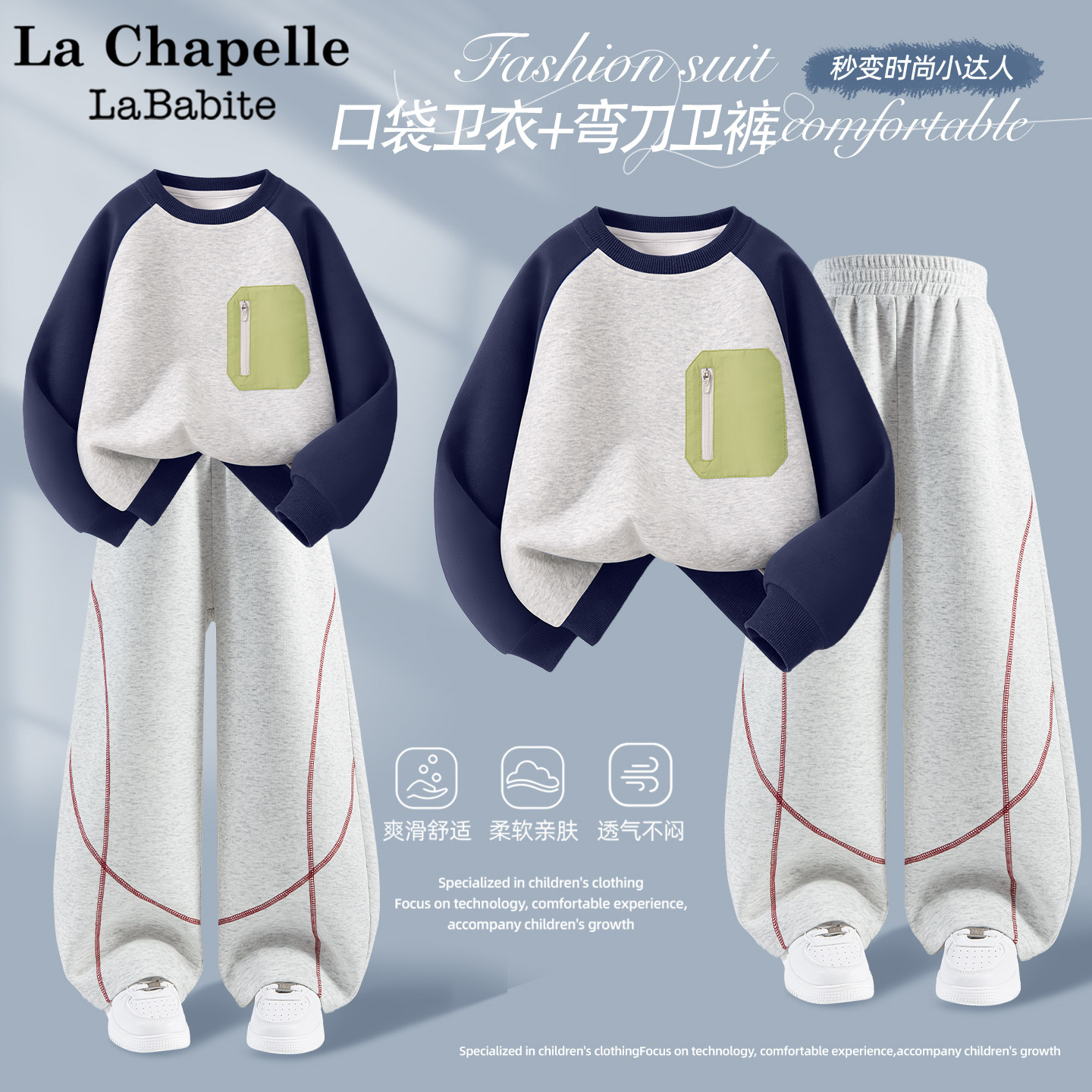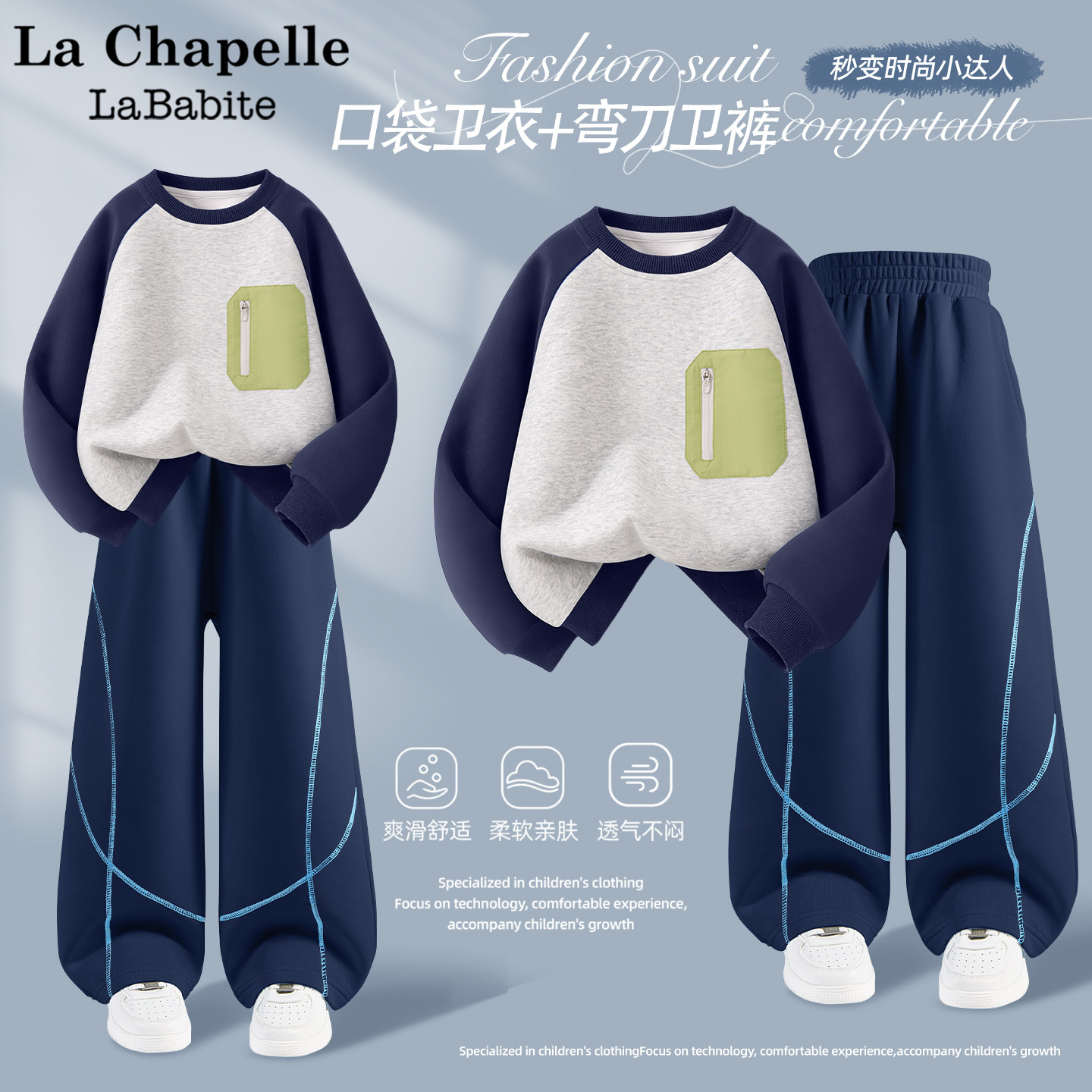 拉夏贝尔男童套装春装2026新款童装春季小男孩卫衣儿童弯刀牛仔裤