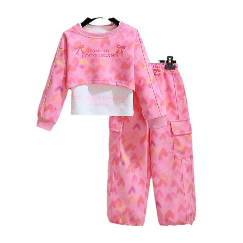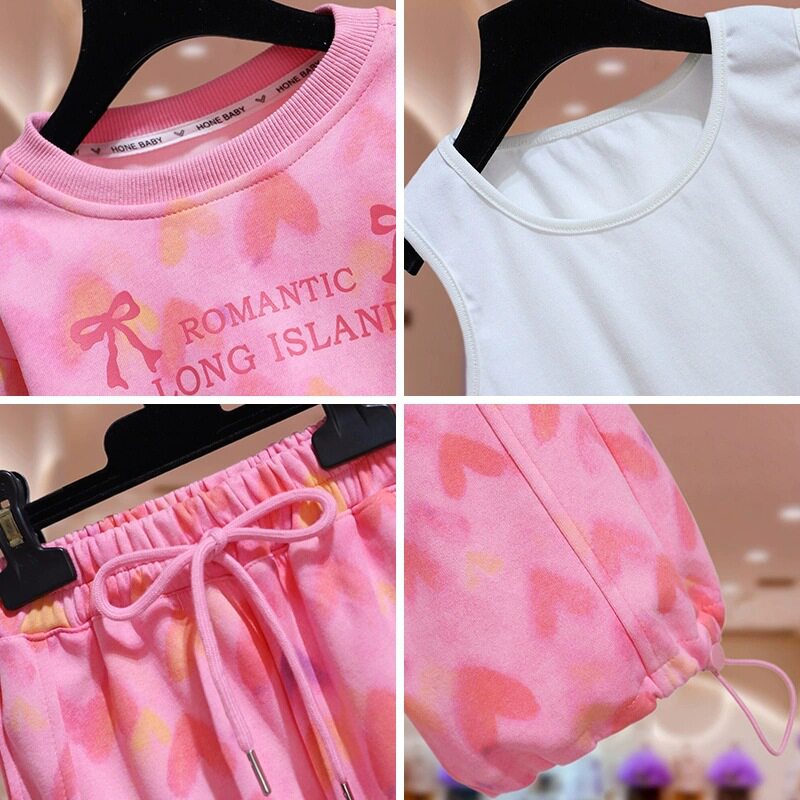 女童时尚套装2025新款春秋洋气时髦女孩短款卫衣背心阔腿裤三件套