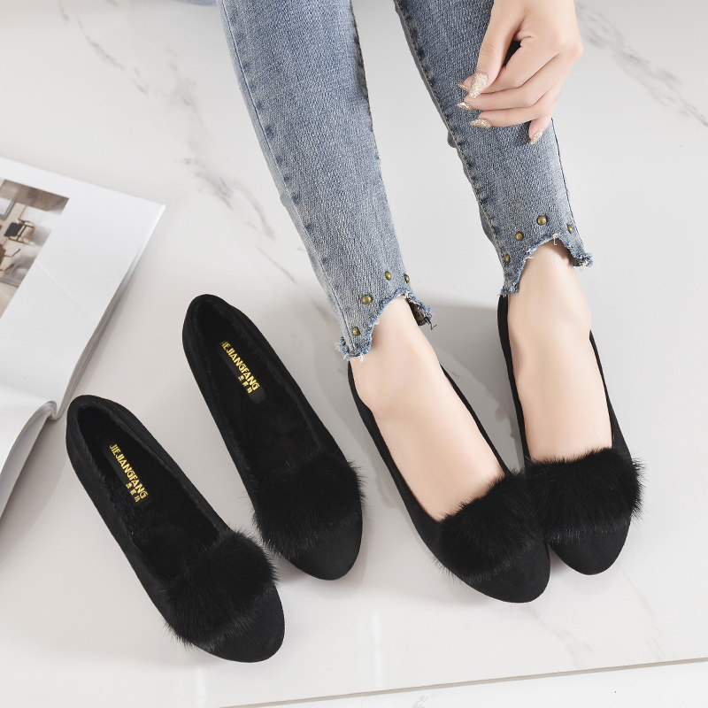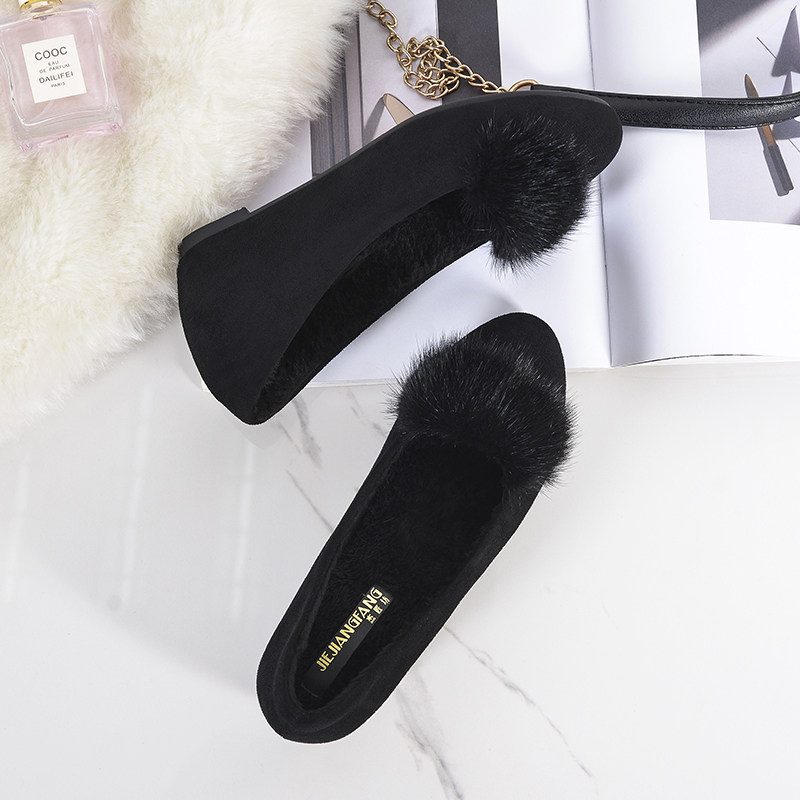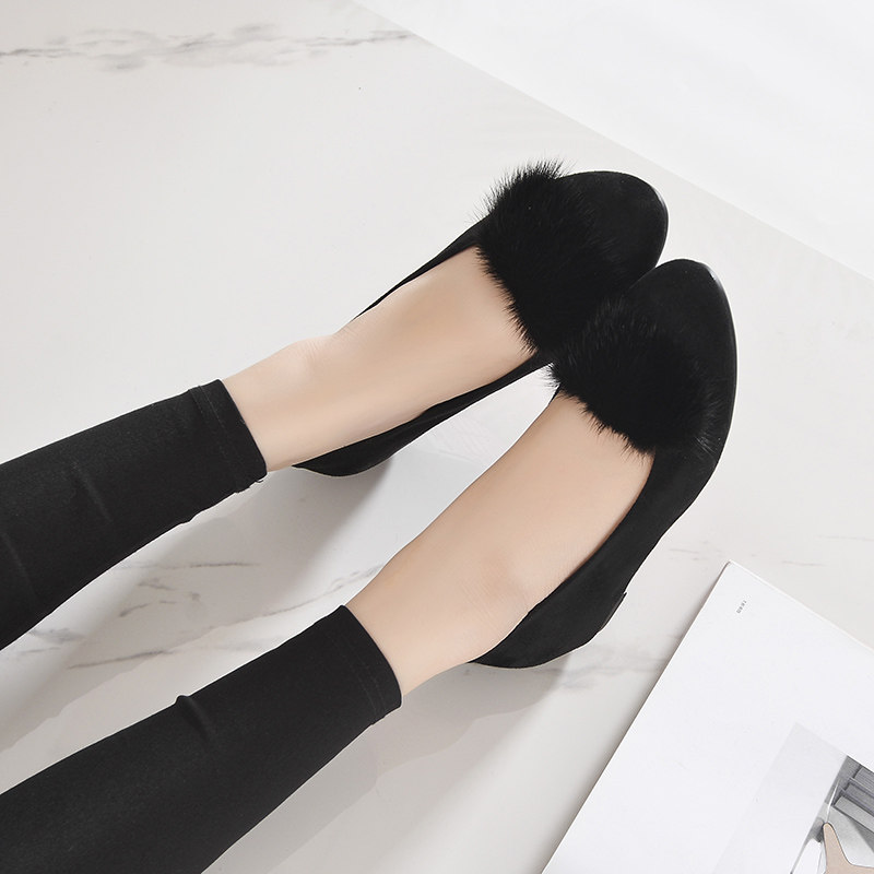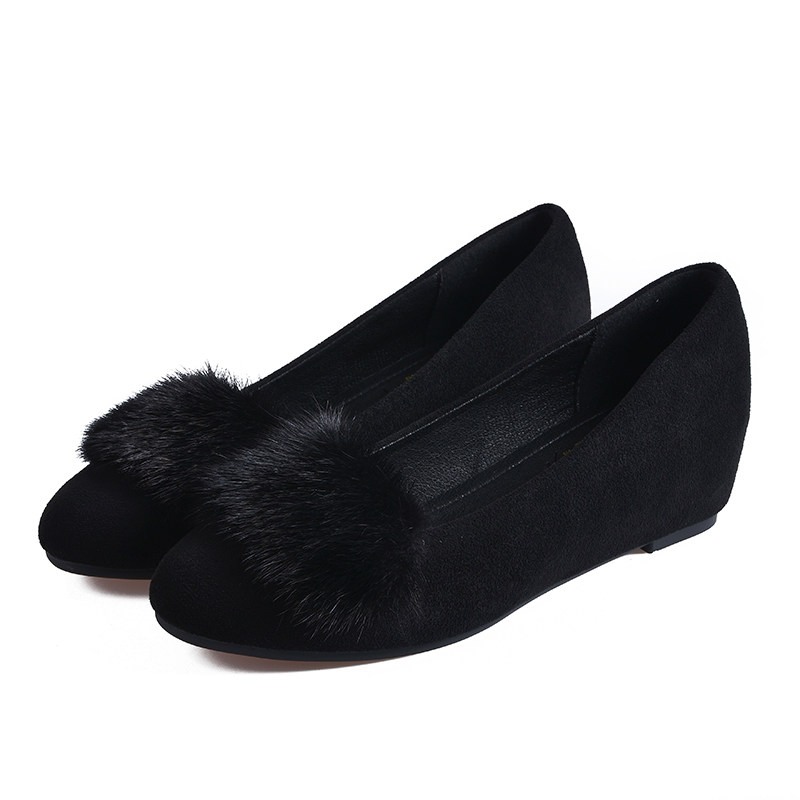 2025秋冬新款真皮水貂毛毛豆豆鞋平底圆头坡跟女鞋百搭内增高单鞋