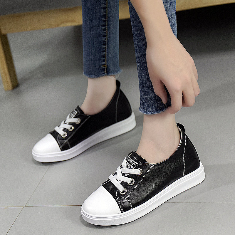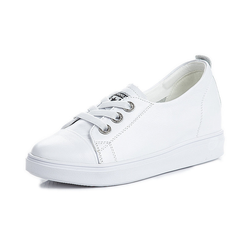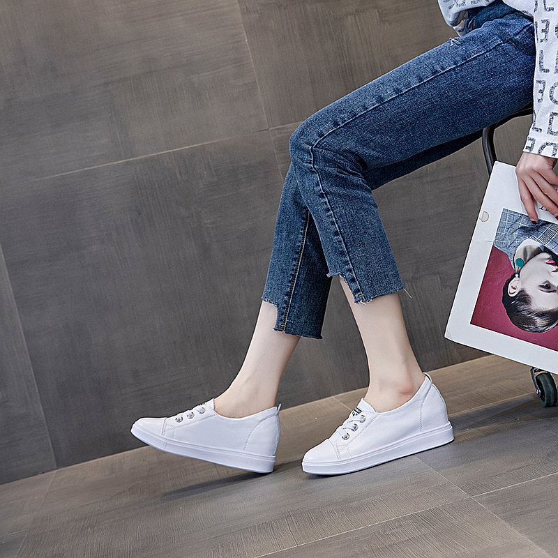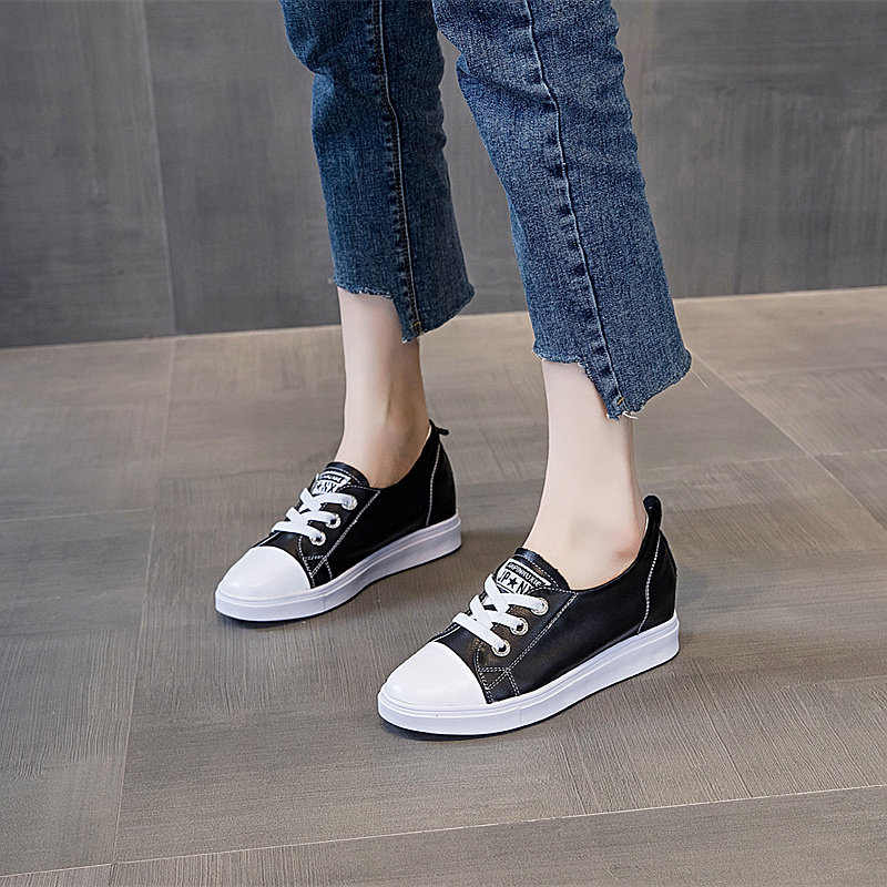 内增高小白鞋女夏季浅口真皮坡跟百搭休闲鞋一脚蹬配裙子显瘦板鞋
