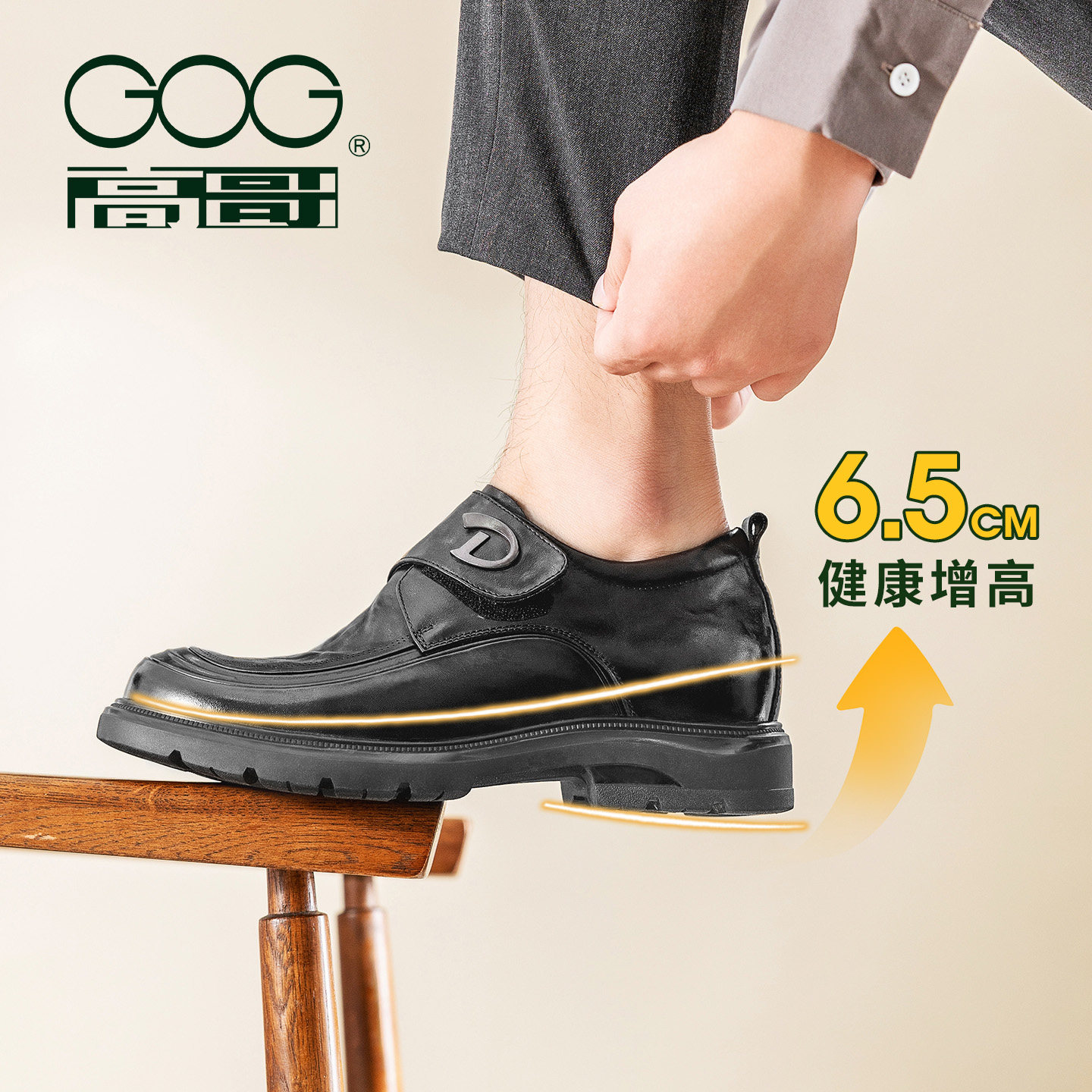 高哥内增高皮鞋男款一脚蹬商务正装鞋子春季男士孟克鞋新款增高鞋