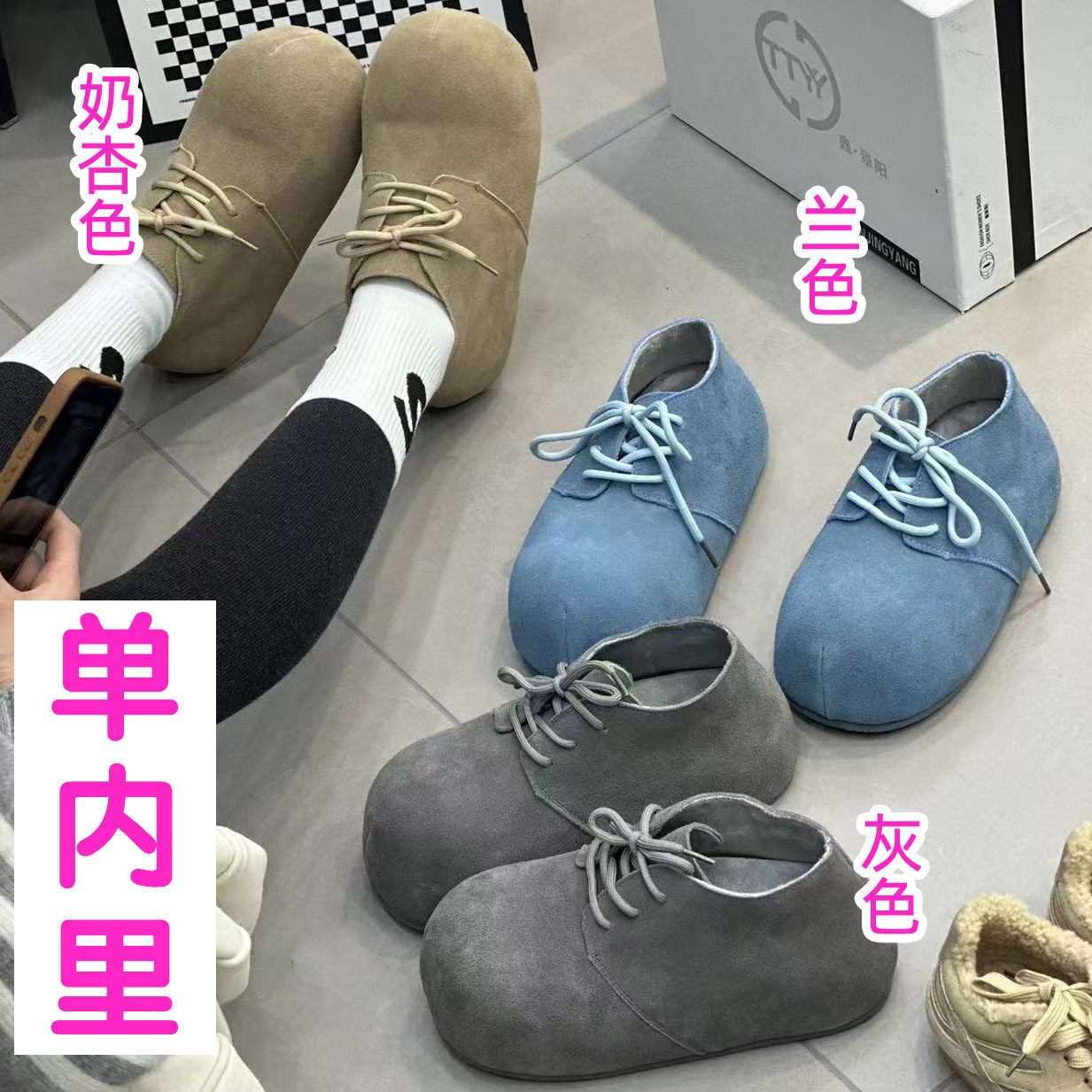大头丑萌卡皮巴拉复古真皮厚底勃肯鞋女2026春季新款内增高女单鞋