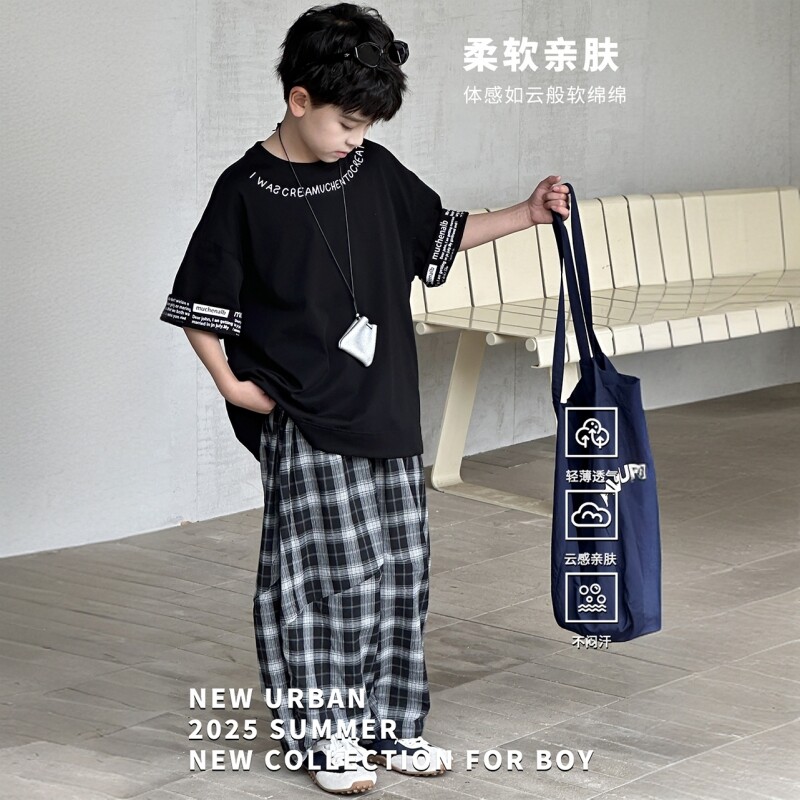 男童套装夏装2026新款儿童装男孩帅气衣服短袖宽松中大童夏季潮酷