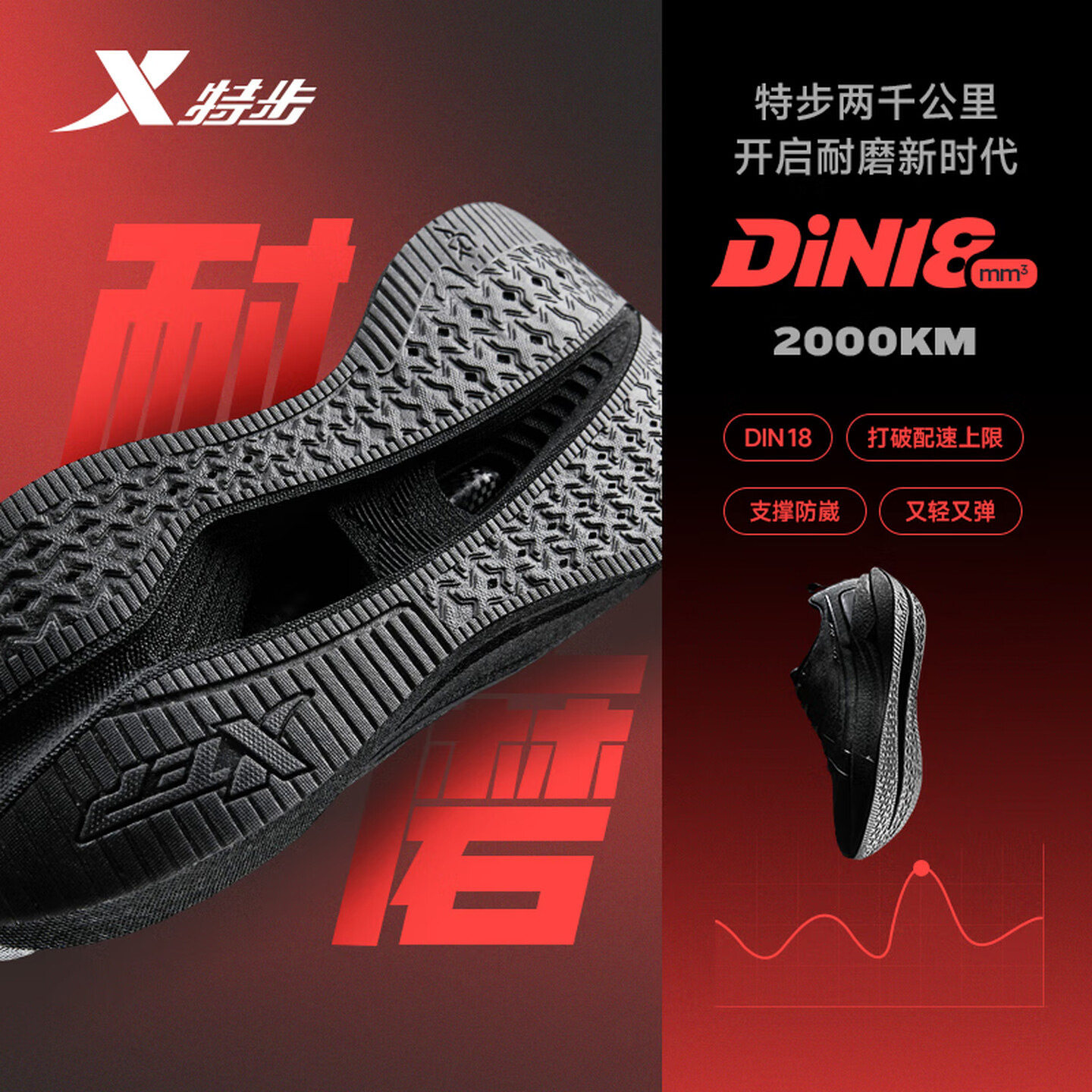 特步两千公里五代丨运动鞋男鞋训练鞋体考跑步鞋男款2000公里跑鞋