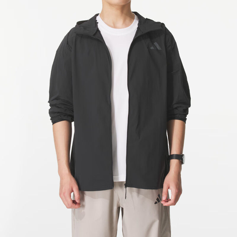 阿迪达斯外套男春季新款户外运动服时尚训练舒适跑步风衣梭织夹克