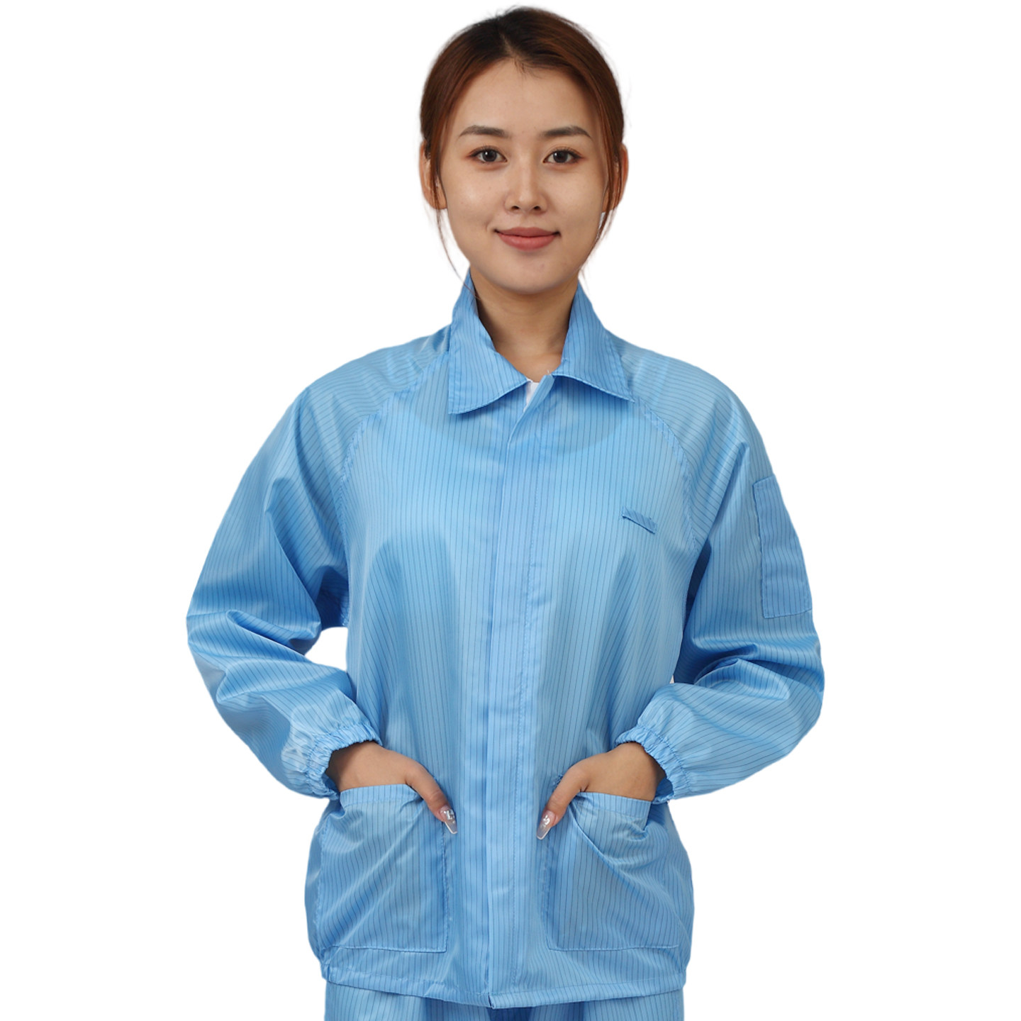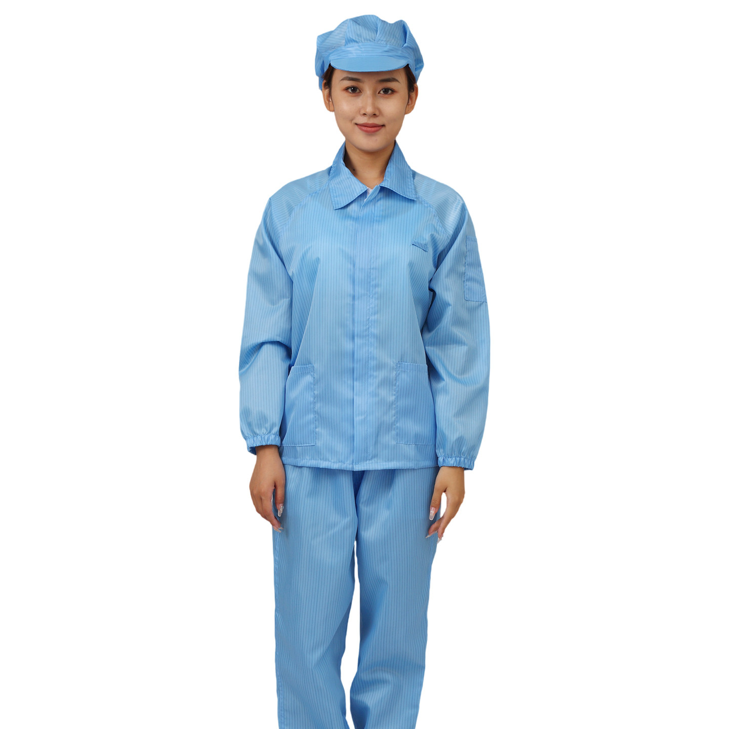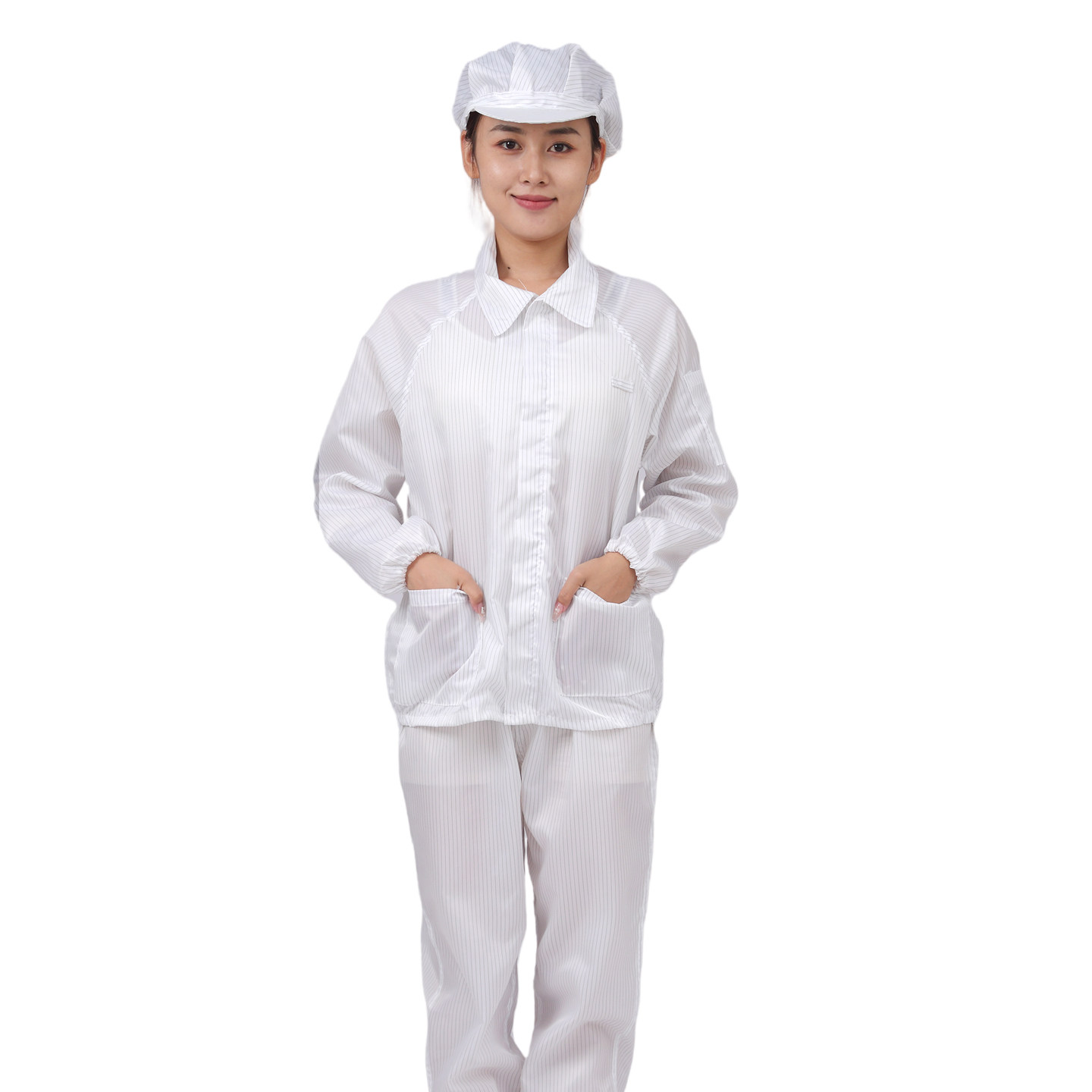 防尘服套装拉链条纹防护服翻领带帽食品厂工作服工厂车间无尘服装