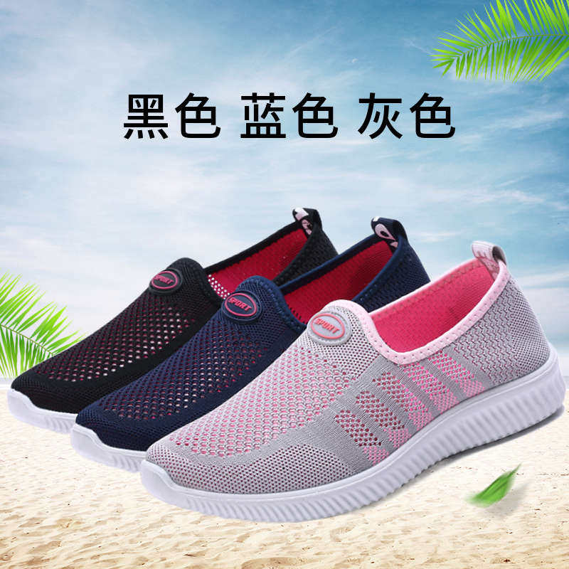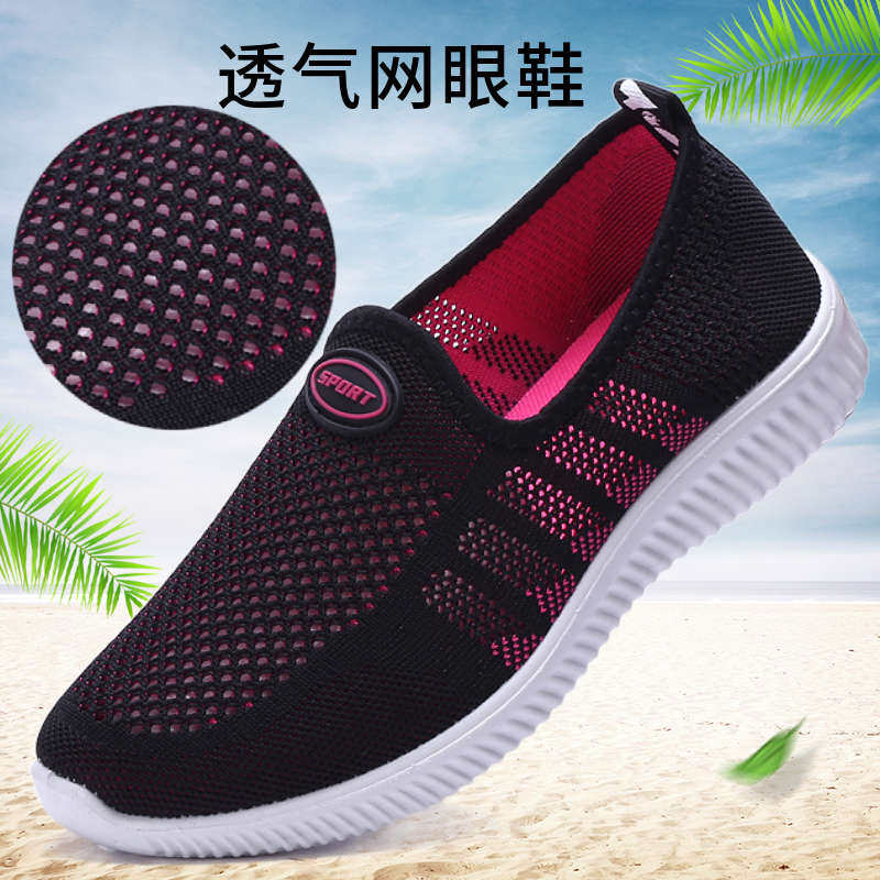 老北京布鞋女透气软底防滑防臭浅口一脚蹬老人女士女款妈妈网面鞋