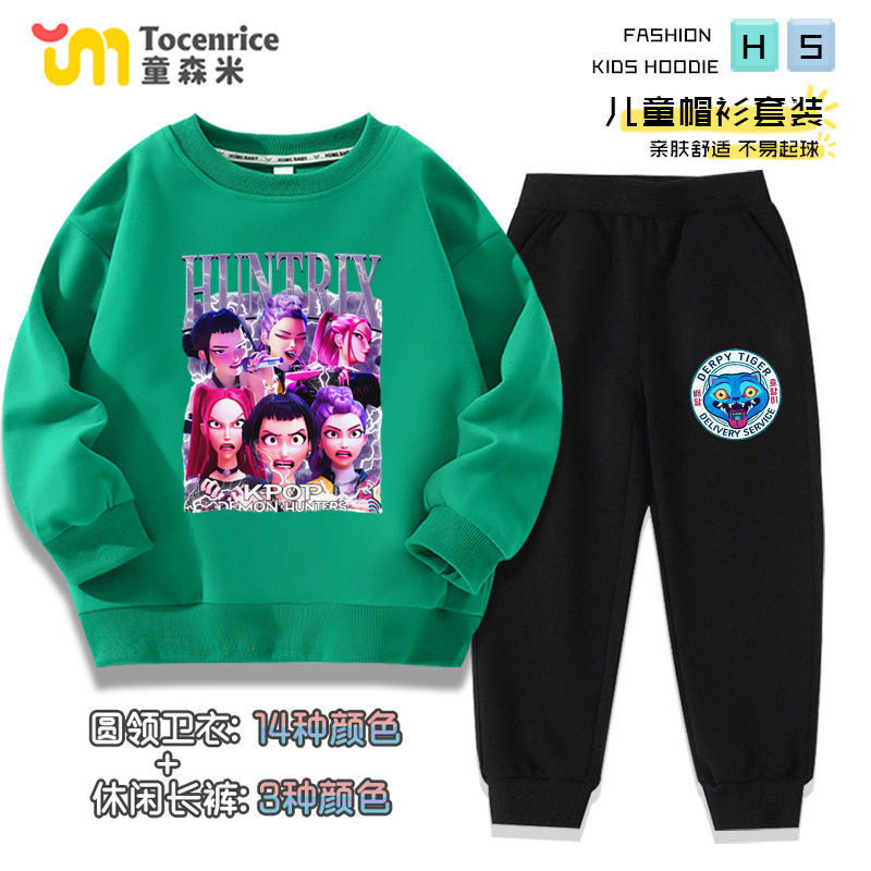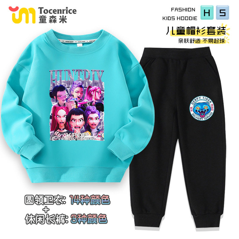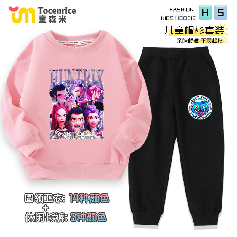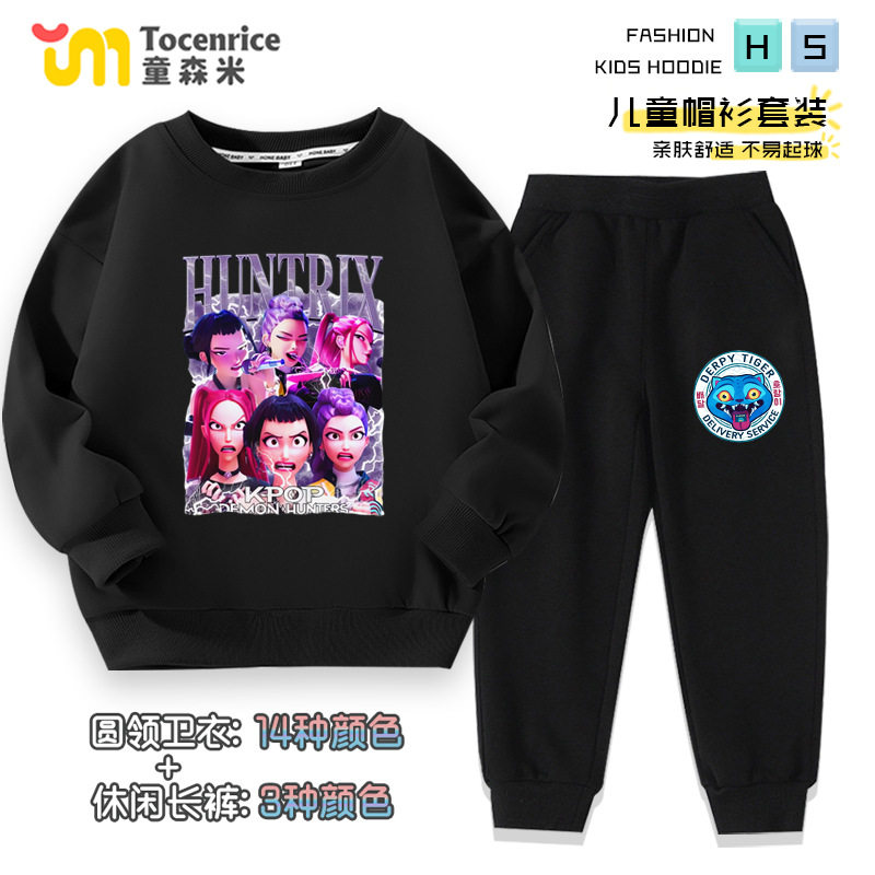 亚马逊 KPop 猎魔女团女童春秋卫衣套装女孩休闲宽松春秋两件套潮
