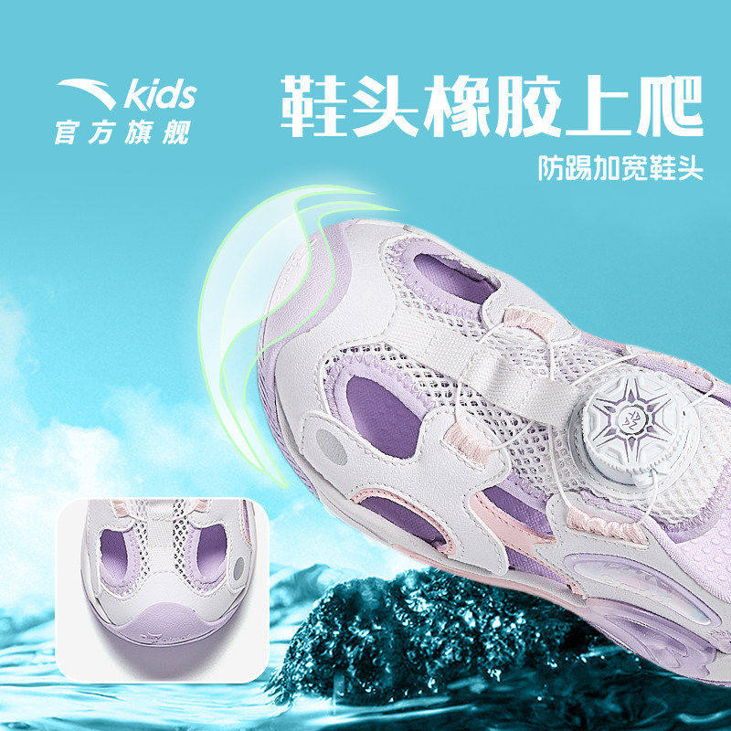安踏儿童水母包头运动凉鞋夏款小童女童纽扣防滑女孩溯溪沙滩鞋