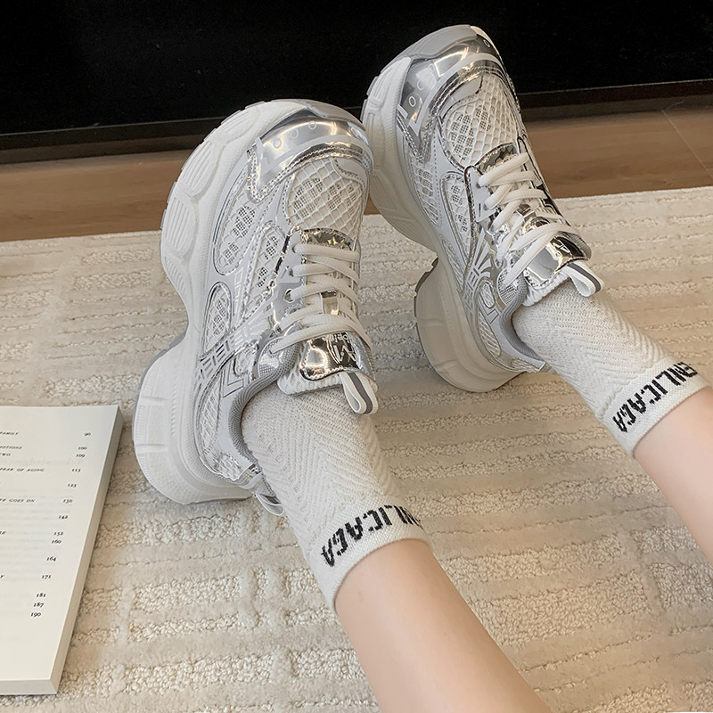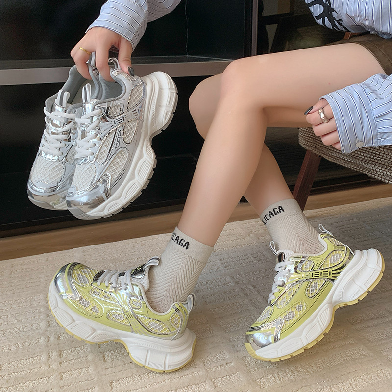 老爹鞋女款2025新款夏季网面透气薄款超火轻厚底休闲运动鞋子女鞋