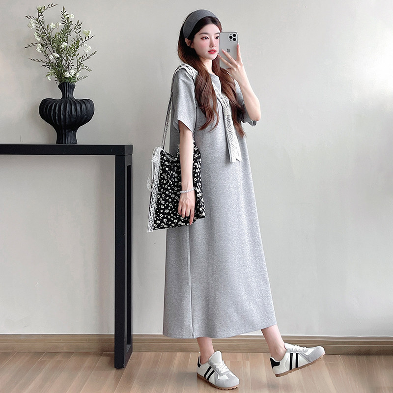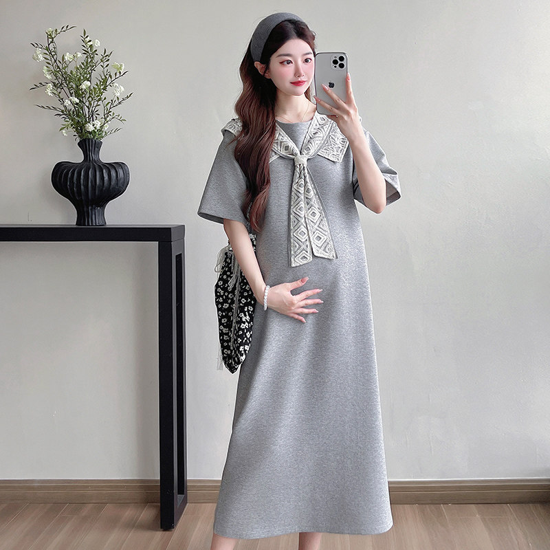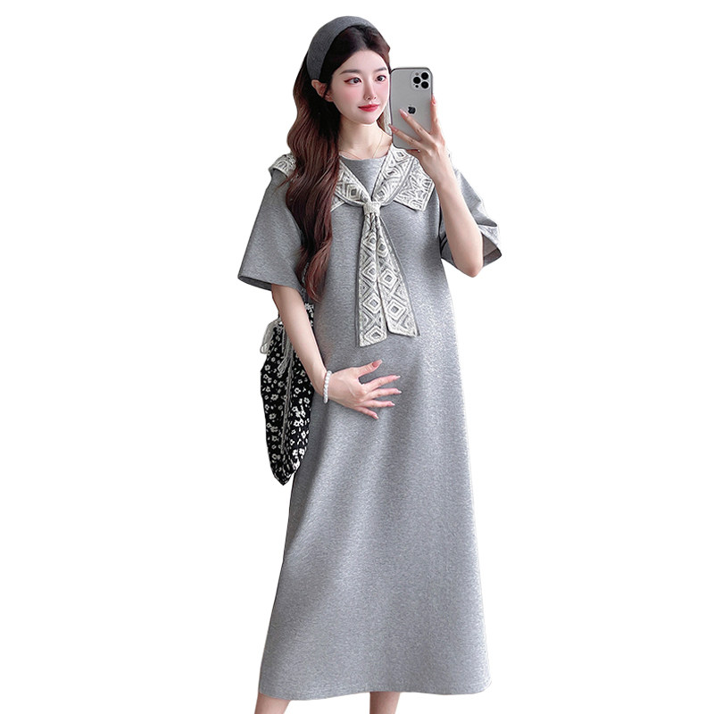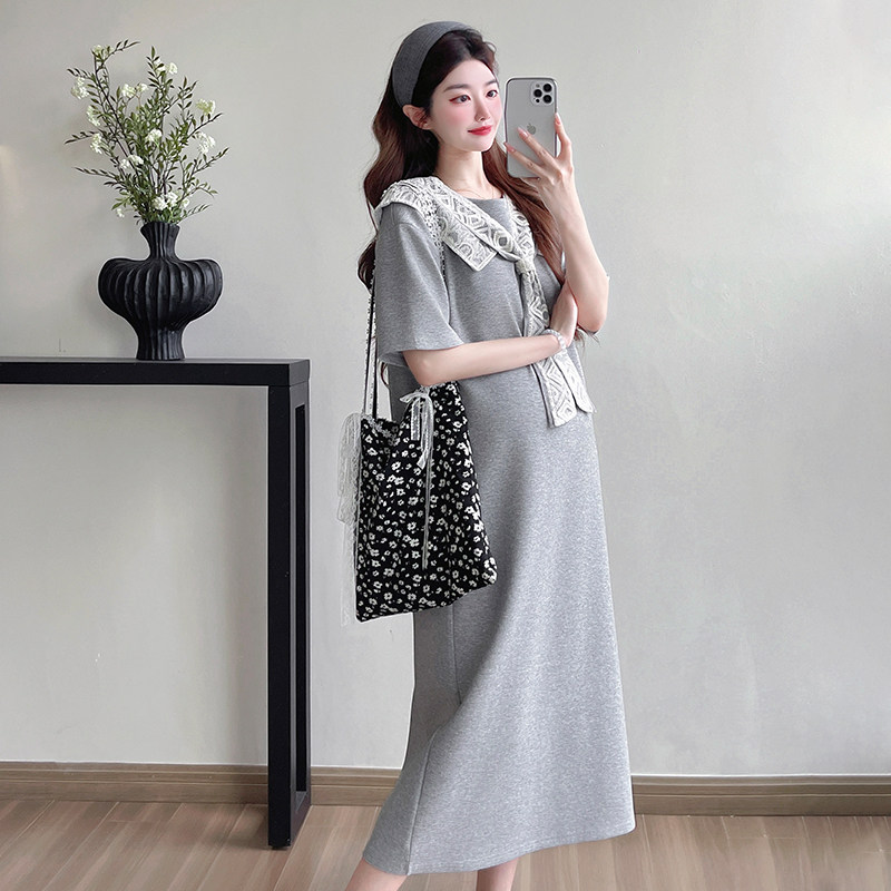 大码孕妇连衣裙2025夏季薄款时髦中长款假两件减龄短袖裙子200斤