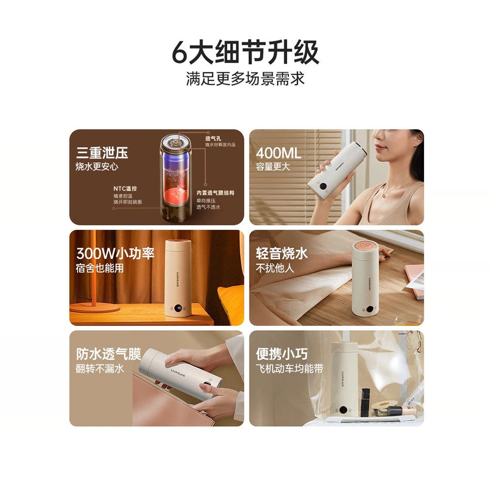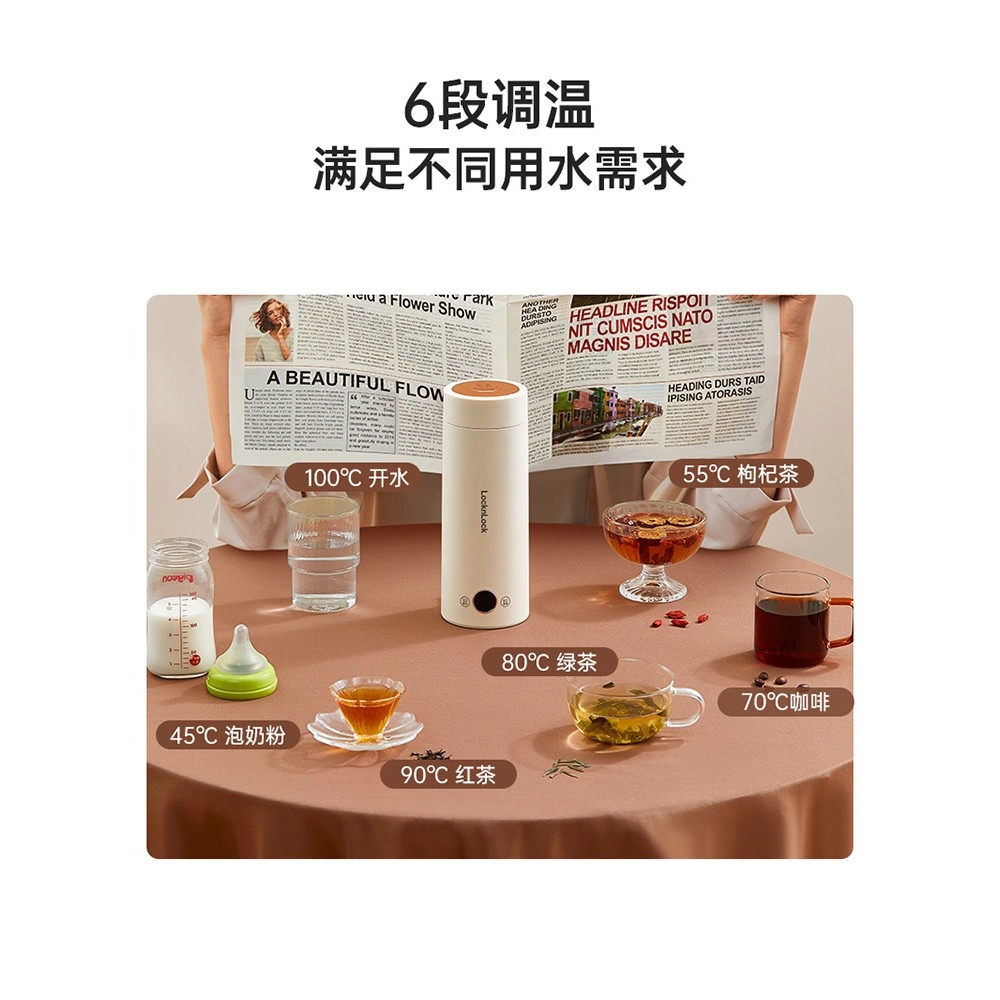 乐扣烧水杯便携式烧水壶迷你旅行出差家用小型恒温全自动电热水杯