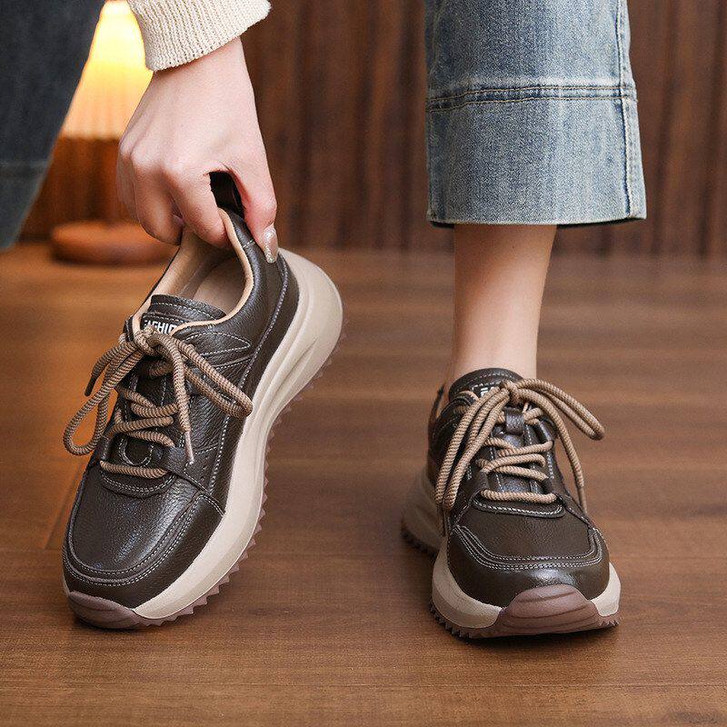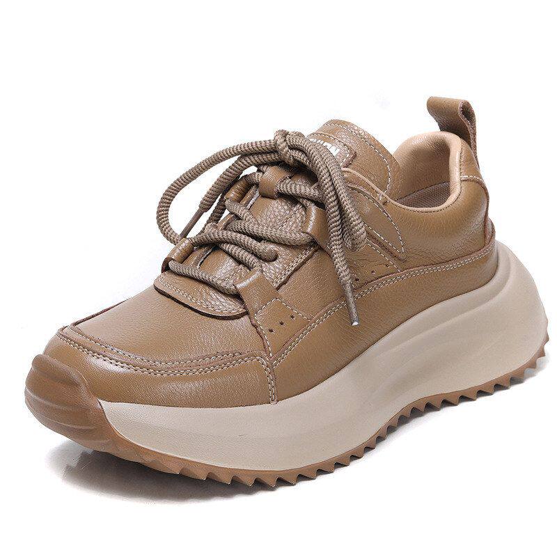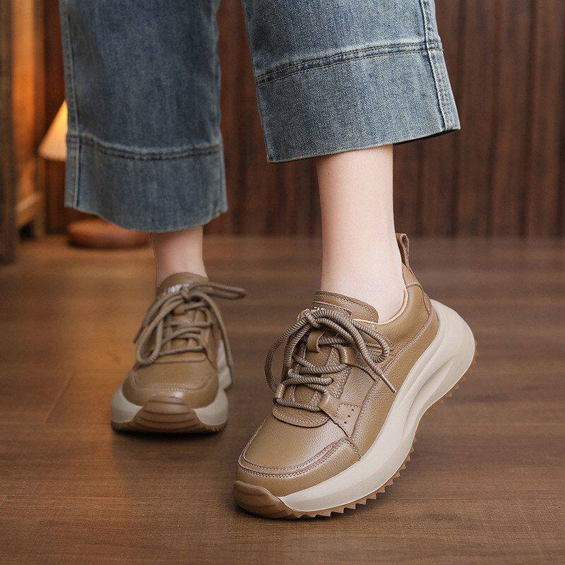 头层主人家优质牛皮厚底老爹鞋女春秋新款软底休闲鞋圆头百搭单鞋