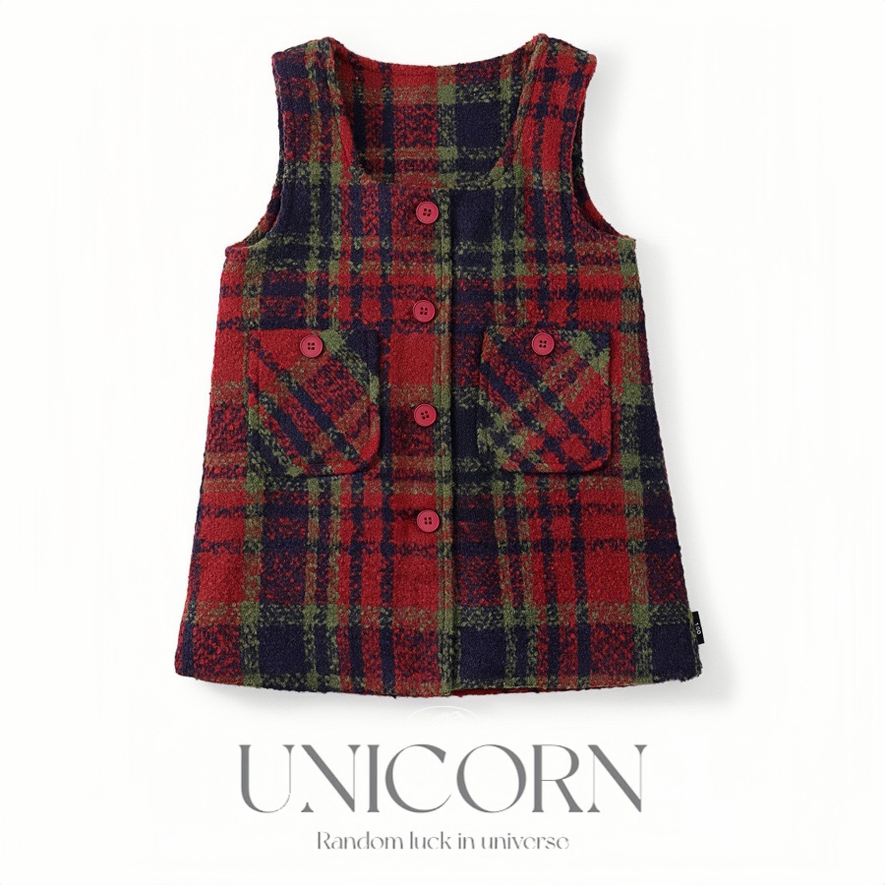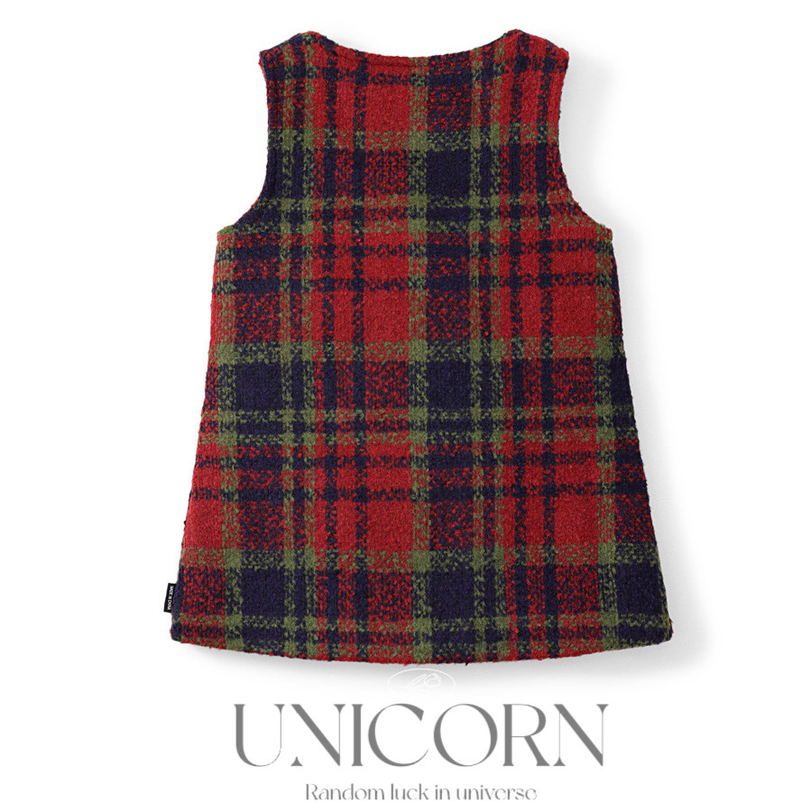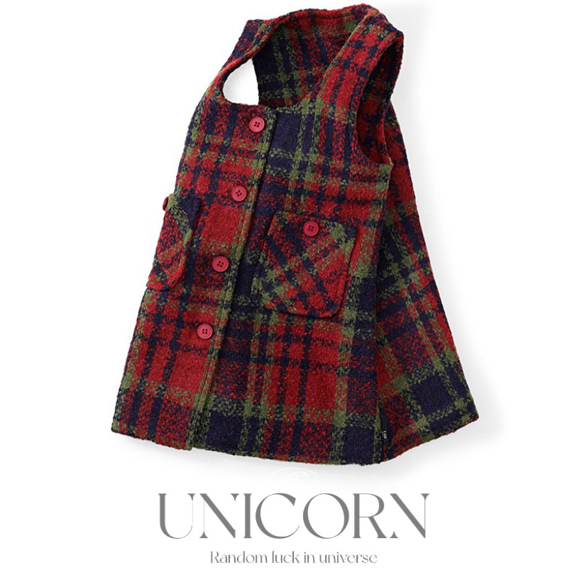 UNICORN女童背心连衣裙秋冬新款中小童圣诞洋气小香风格子毛呢裙