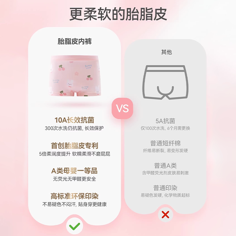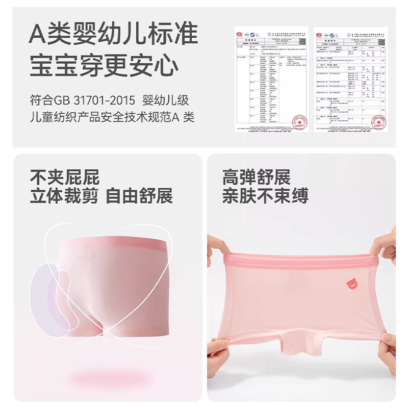 贝肽斯[胎脂皮]女童内裤儿童纯棉a类中大童女宝宝四角裤不夹屁屁