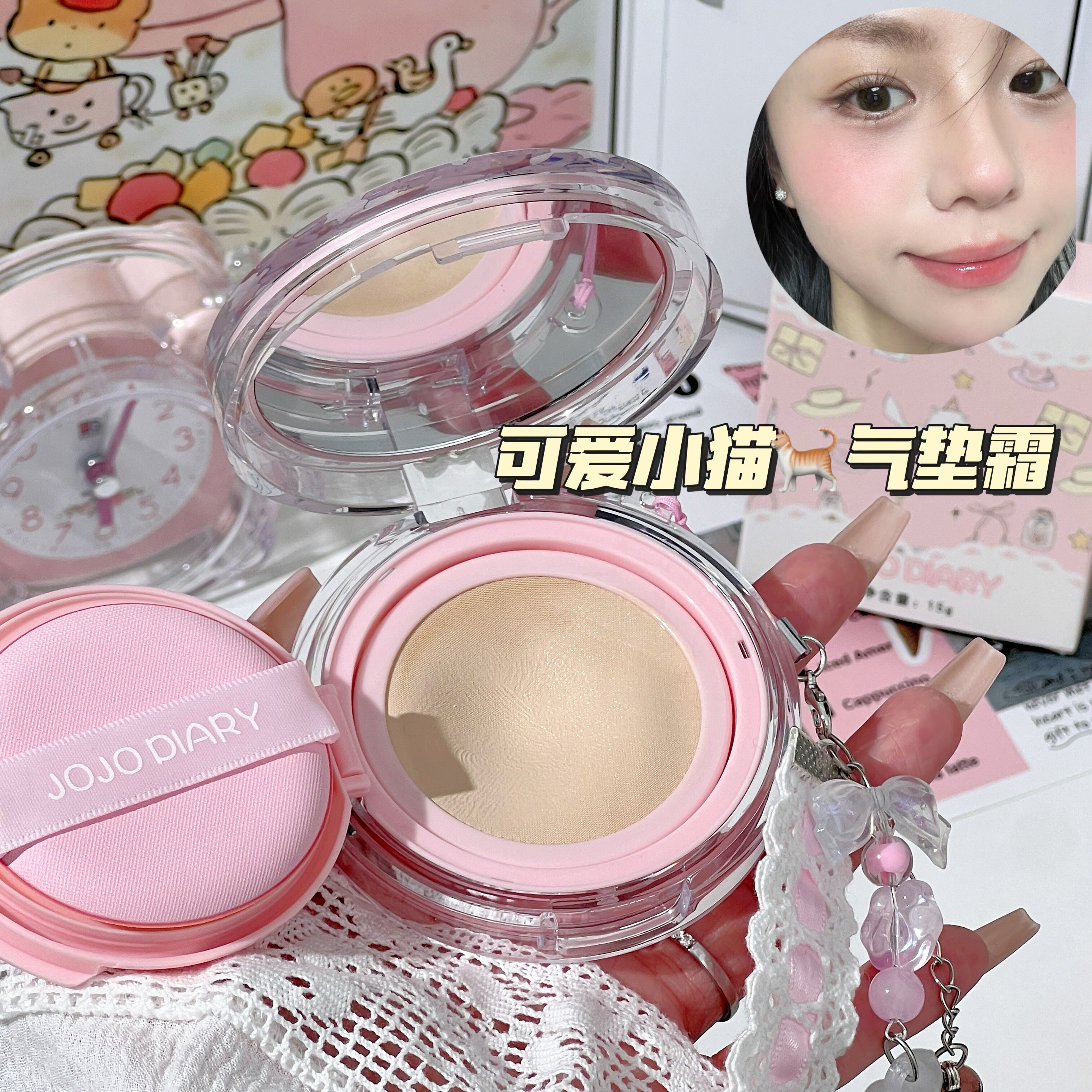 卡通猫咪气垫BB霜女持久不脱妆哑光奶油肌轻薄保湿遮瑕水润气垫霜