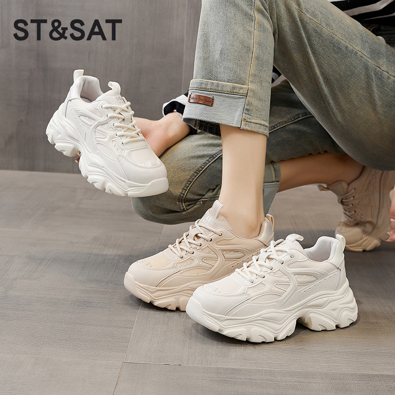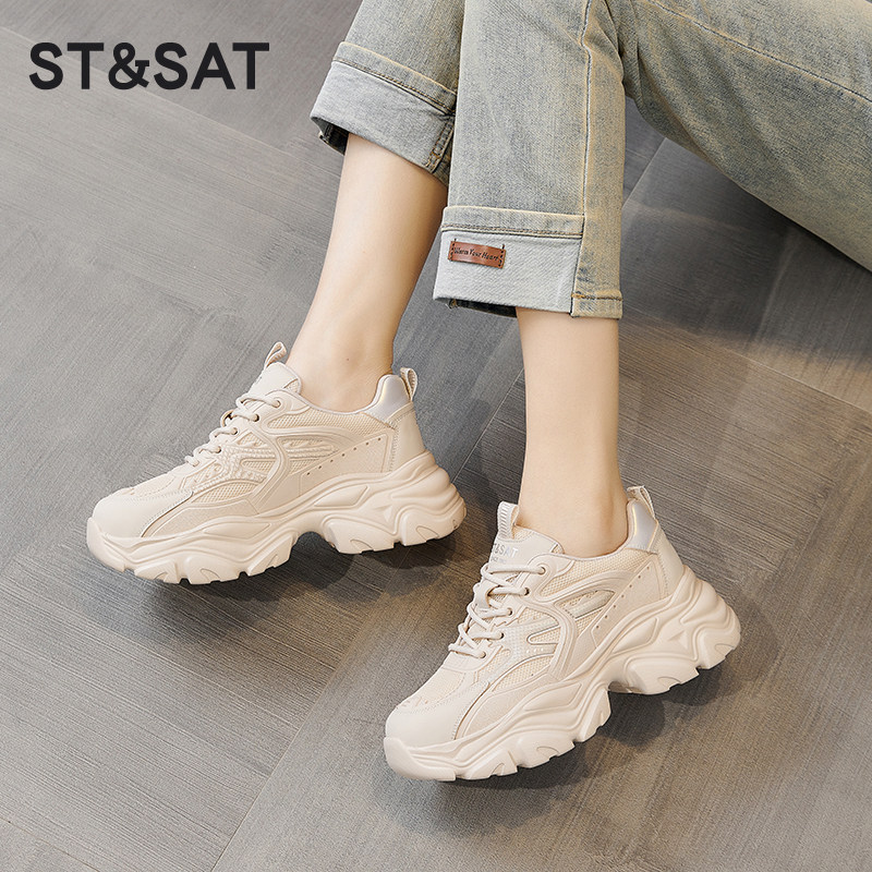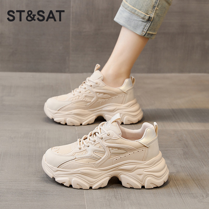星期六老爹鞋女款新款夏季爆款网面透气休闲鞋厚底小个子增高女鞋