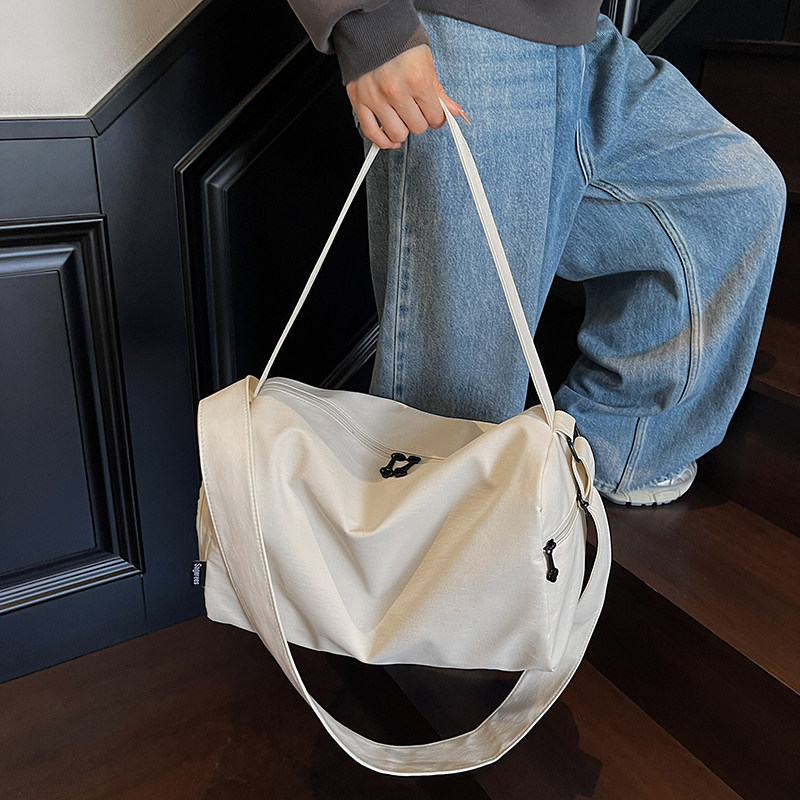 311线报网描述:粉色简约独立鞋仓圆筒运动包可套拉杆箱