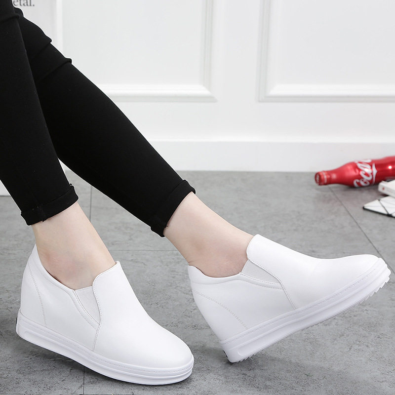 真皮内增高小白鞋女2025春夏新款休闲百搭透气运动旅游一脚蹬板鞋