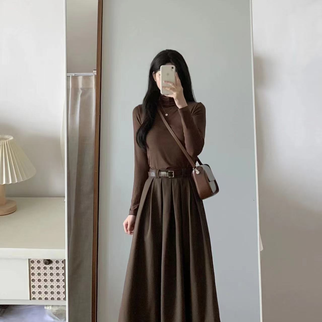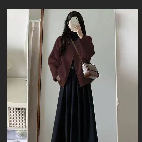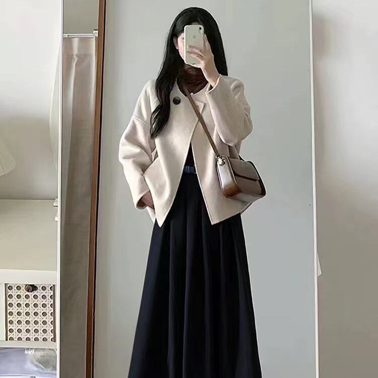 秋冬装搭配一整套女盐系高级感小香风韩剧穿搭三件套装连衣裙子