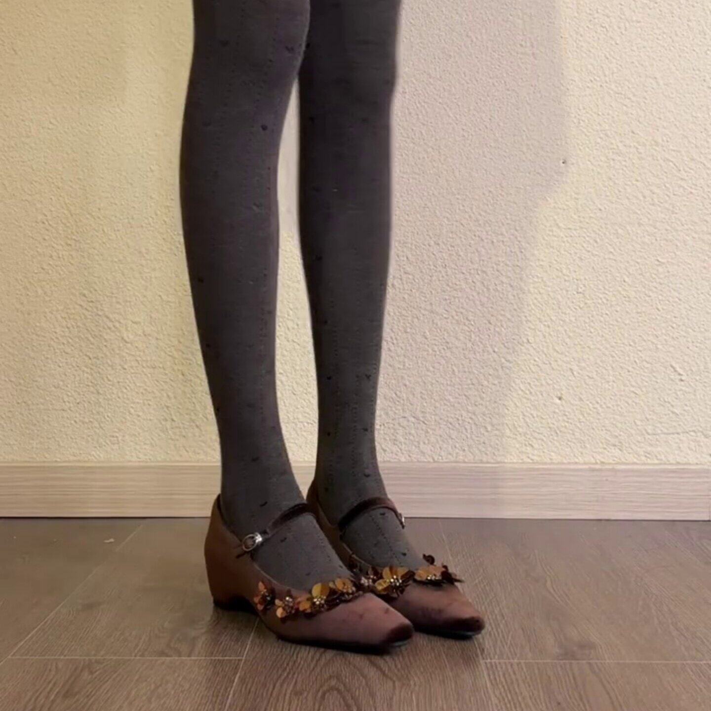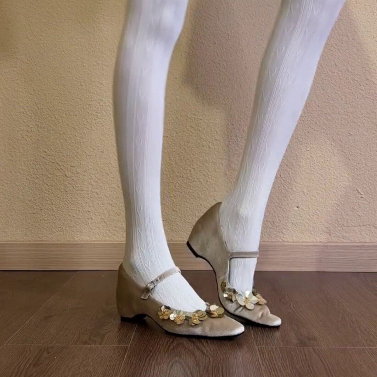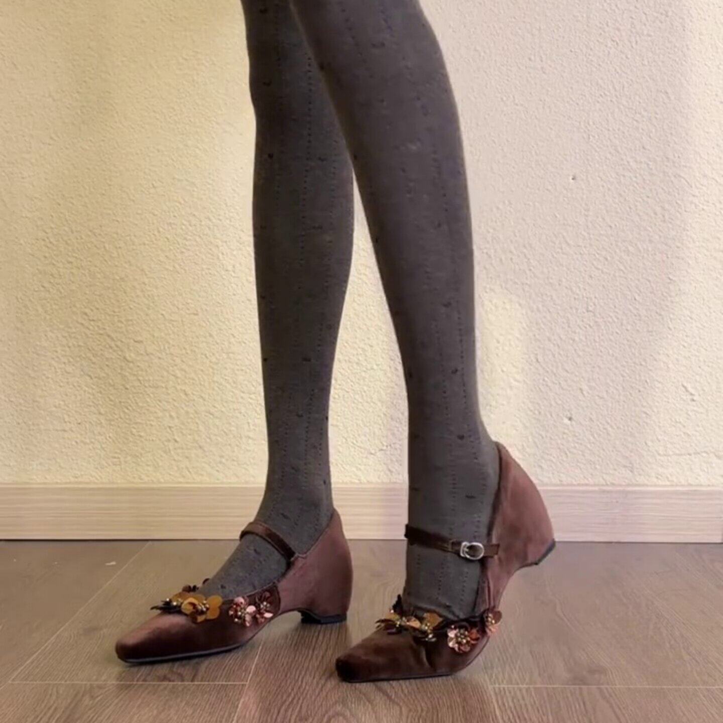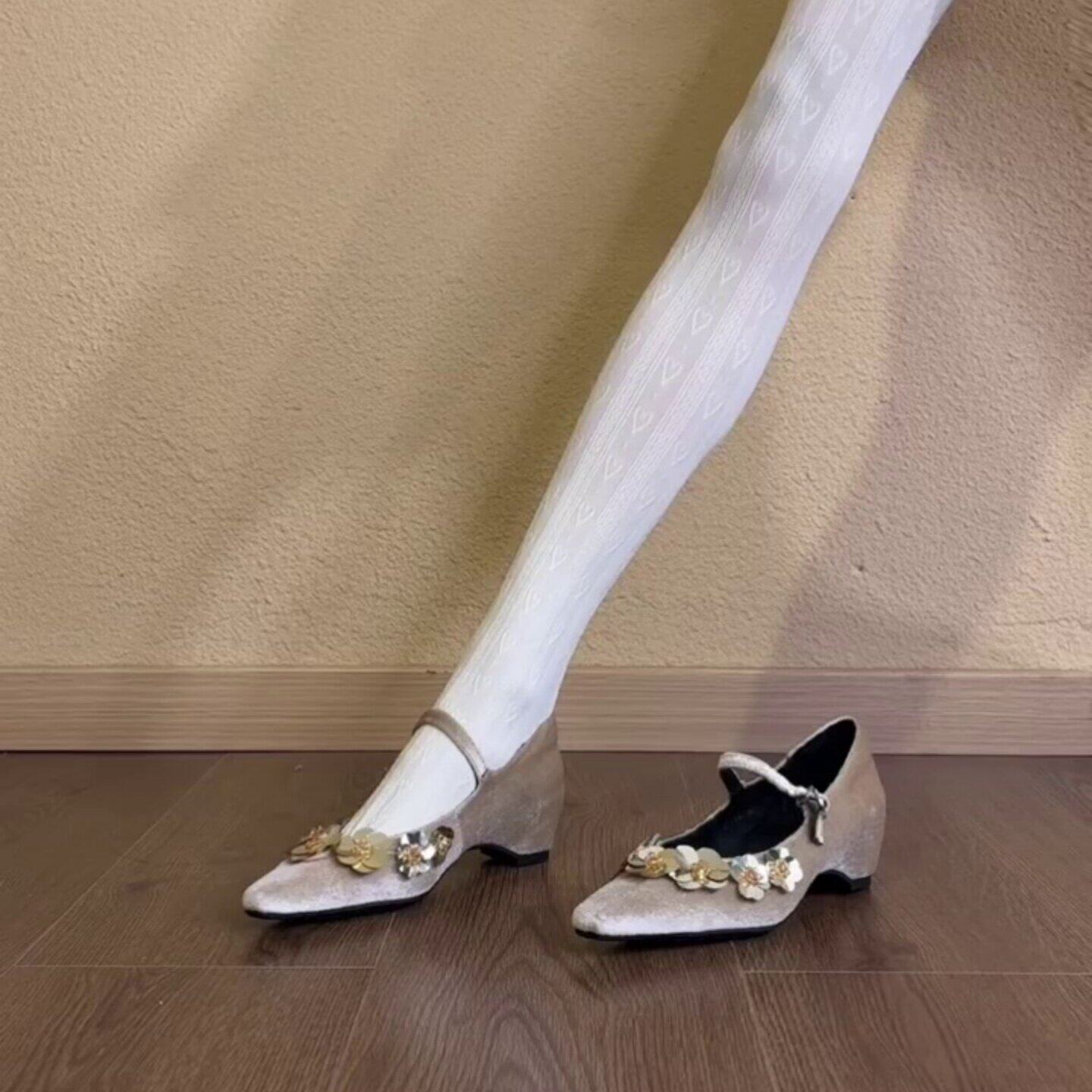 复古尖头亮片花朵内增高玛丽珍鞋女2026新款一字扣带通勤浅口单鞋