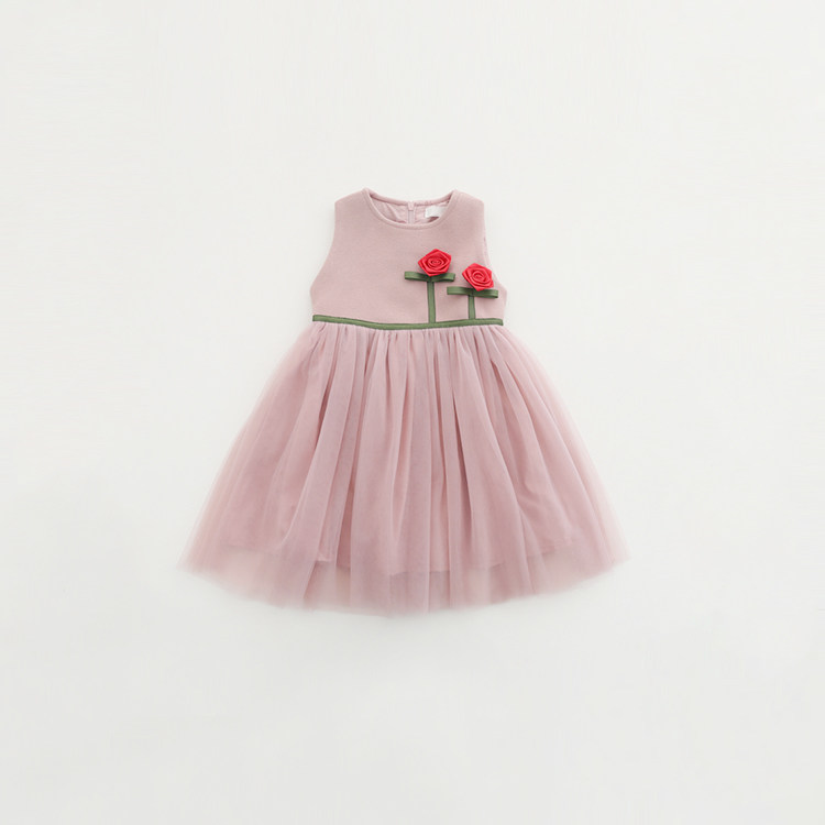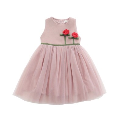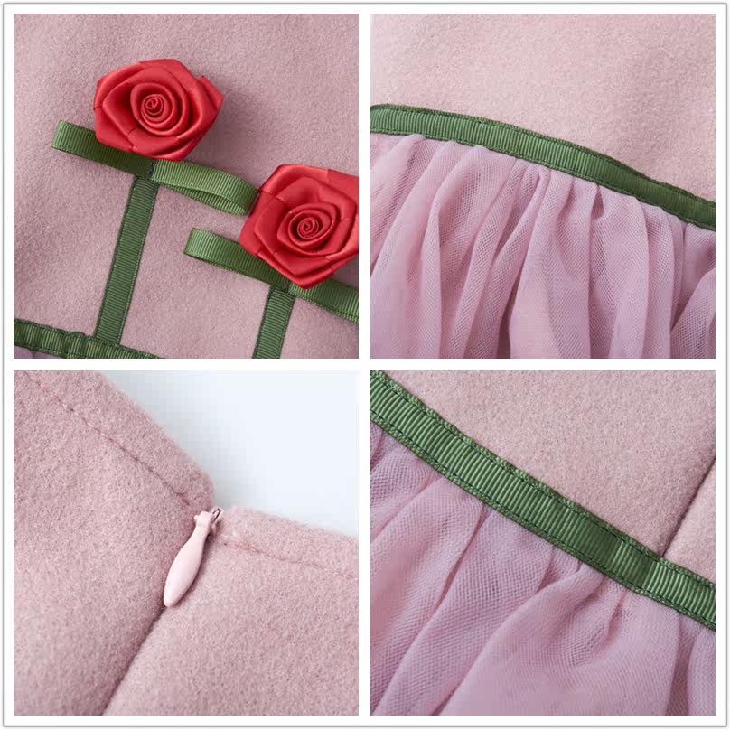 女童秋冬装连衣裙韩版童装薄呢子儿童背心裙立体花朵拼纱公主裙儿