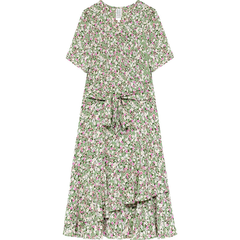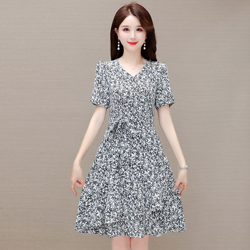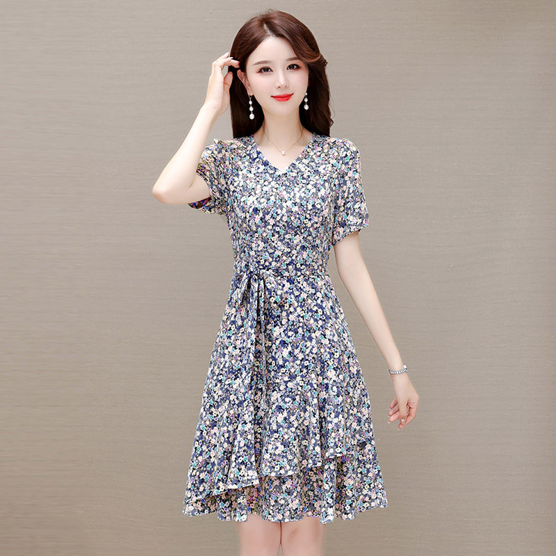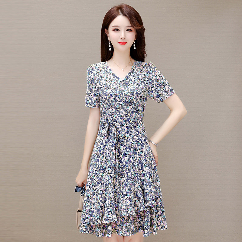 V领小个子连衣裙女夏季2026年新款收腰显瘦遮肚子中长款碎花裙子