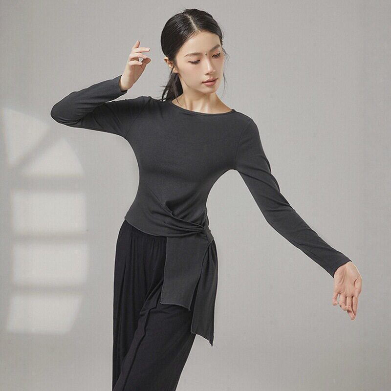 秋冬季绑带长袖形体服现代舞中国舞古典舞蹈服装成人练功服上衣女