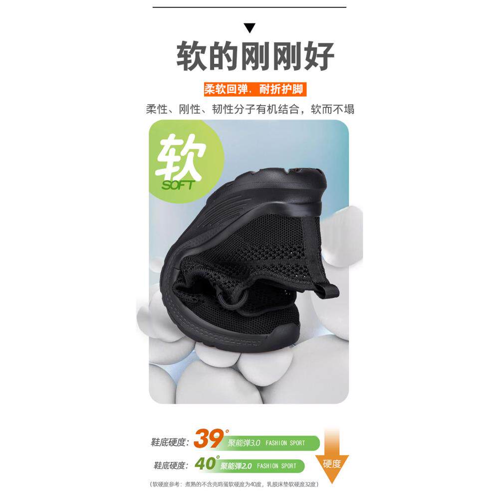夏季女鞋拇外翻宽脚妈妈鞋黑色休闲运动鞋透气网眼一脚蹬轻便网鞋