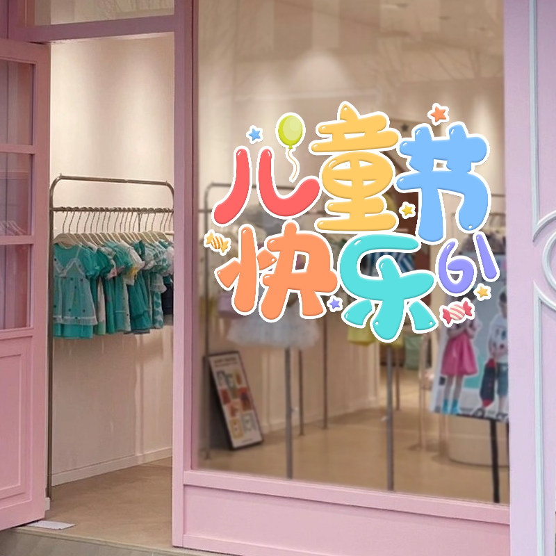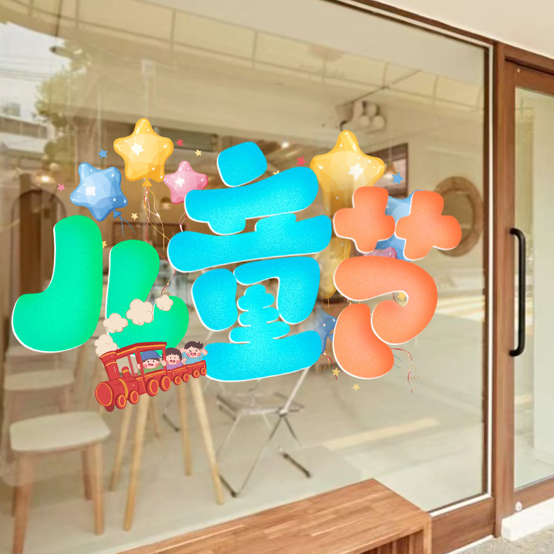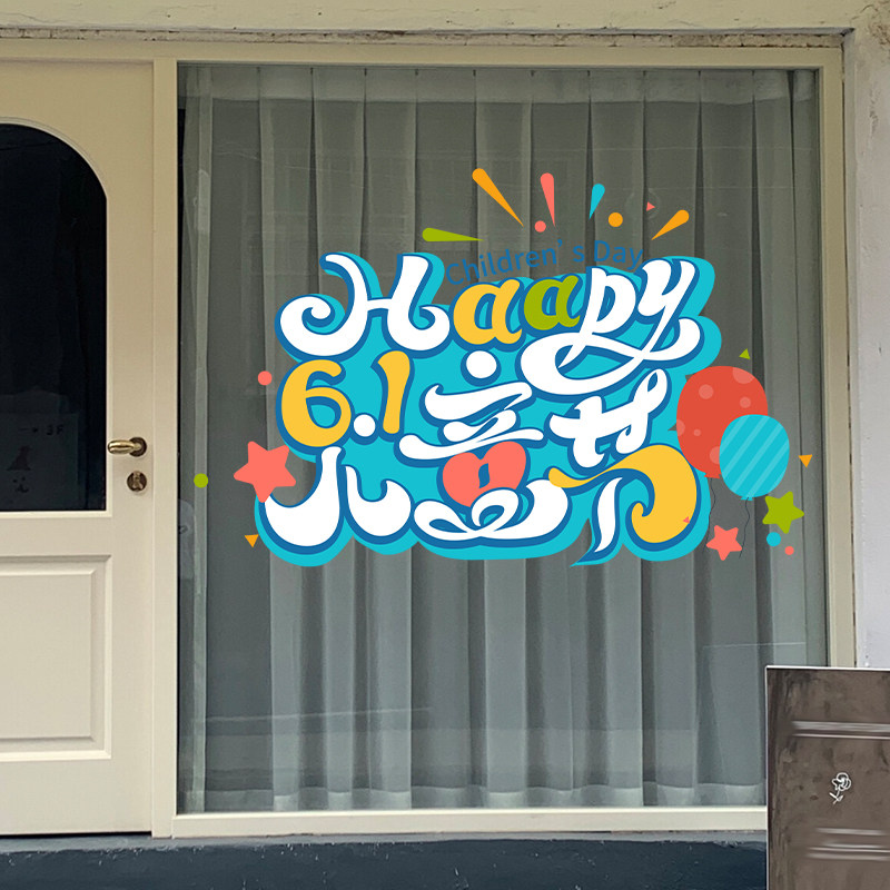 六一儿童节装饰品教室班级场景布置幼儿园小学静电玻璃门贴窗贴61