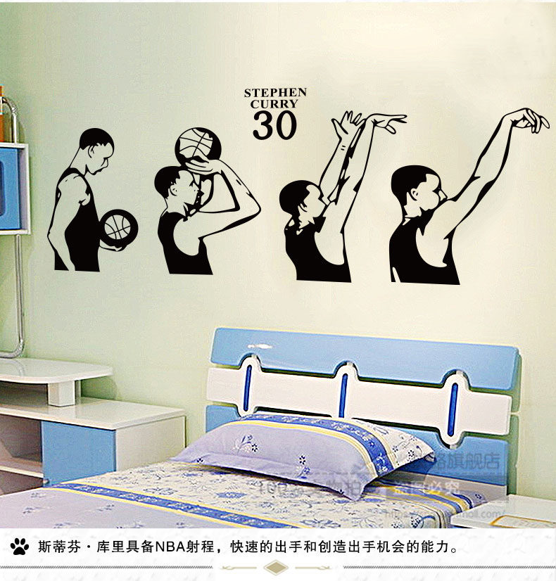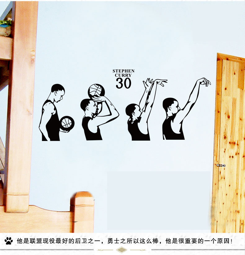篮球NBA明星墙贴 库里投篮海报 球吧宿舍卧室墙壁装饰贴画墙贴纸